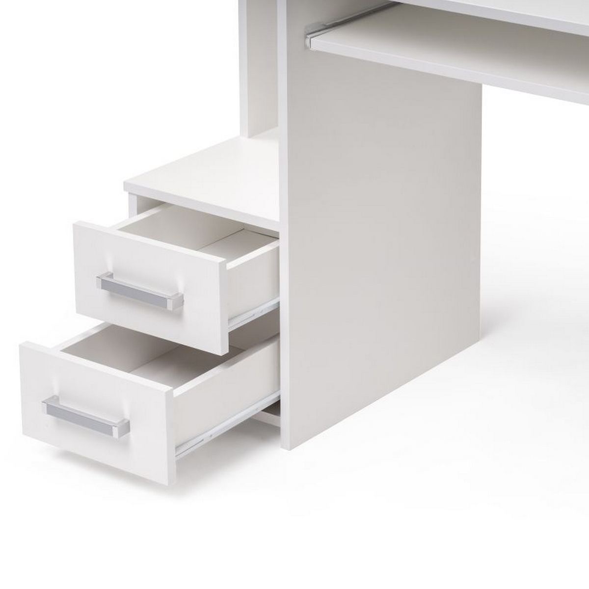 Купить Стол компьютерный письменный HESBY Jazz24 (левый) с выдвижными ящиками, полкой под клавиатуру и под технику. Размер: 87х101х50см. Цвет: белый