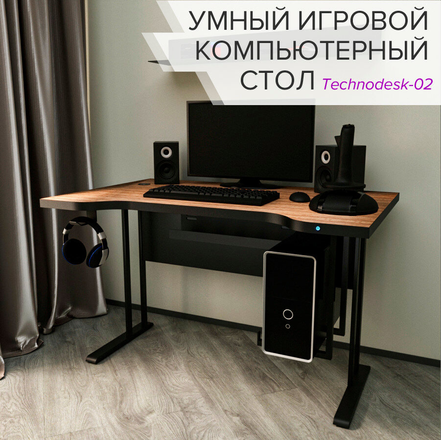 Умный игровой компьютерный стол Technodesk-02 с беспроводной зарядкой, usb-хабом и органайзером, коричневый