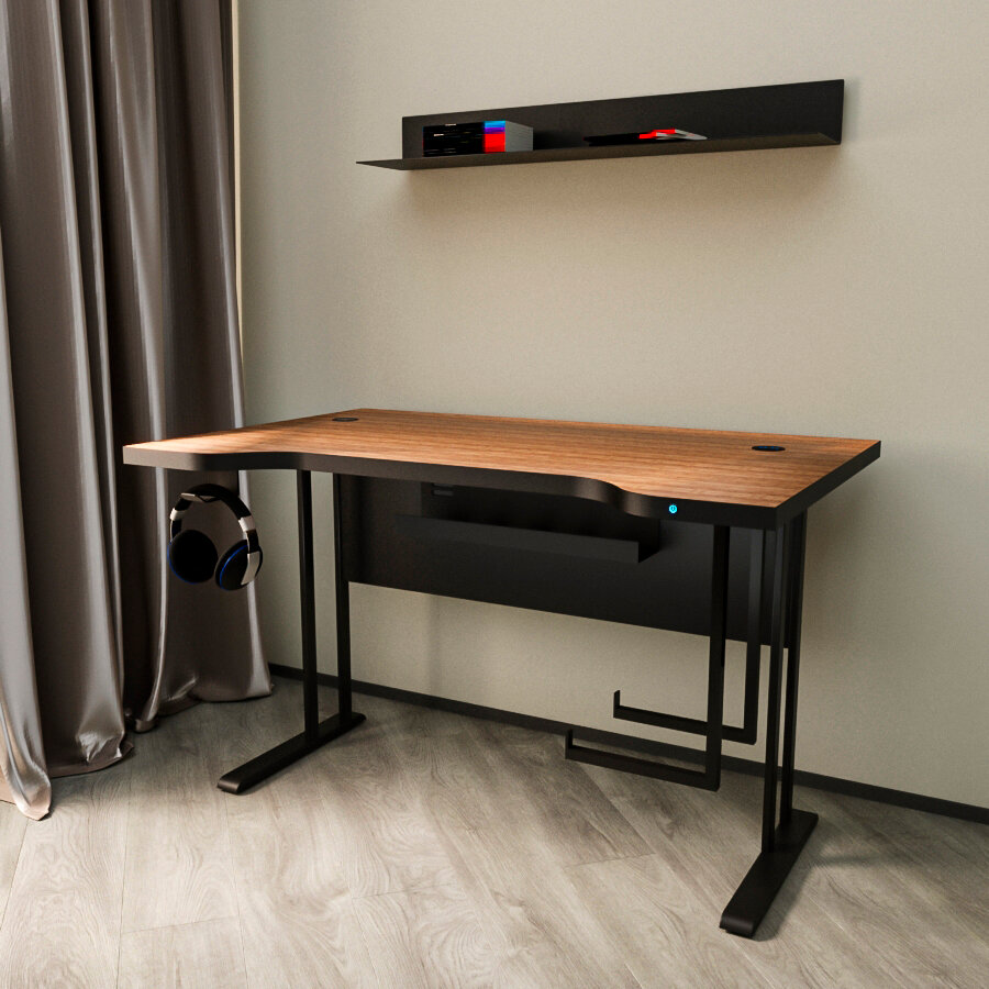 Умный игровой компьютерный стол Technodesk-02 с беспроводной зарядкой и USB-хабом, коричневый на квадратных опорах