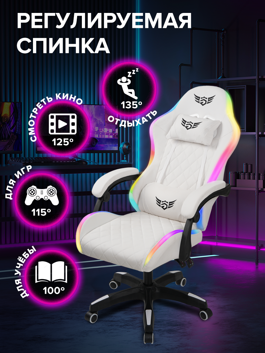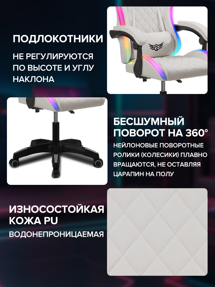 СохранитьFONLUXX 507 RGB- белый, Игровое компьютерное кресло с подголовником, металлический каркас, Кожаные подлокотники, регулируемая спинка интересное: