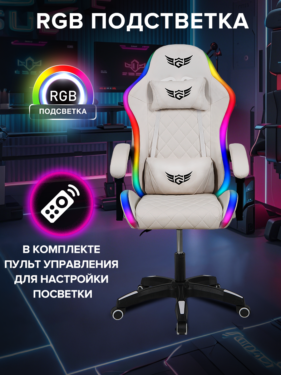 Купить FONLUXX 507 RGB- белый, Игровое компьютерное кресло с подголовником, металлический каркас, Кожаные подлокотники, регулируемая спинка