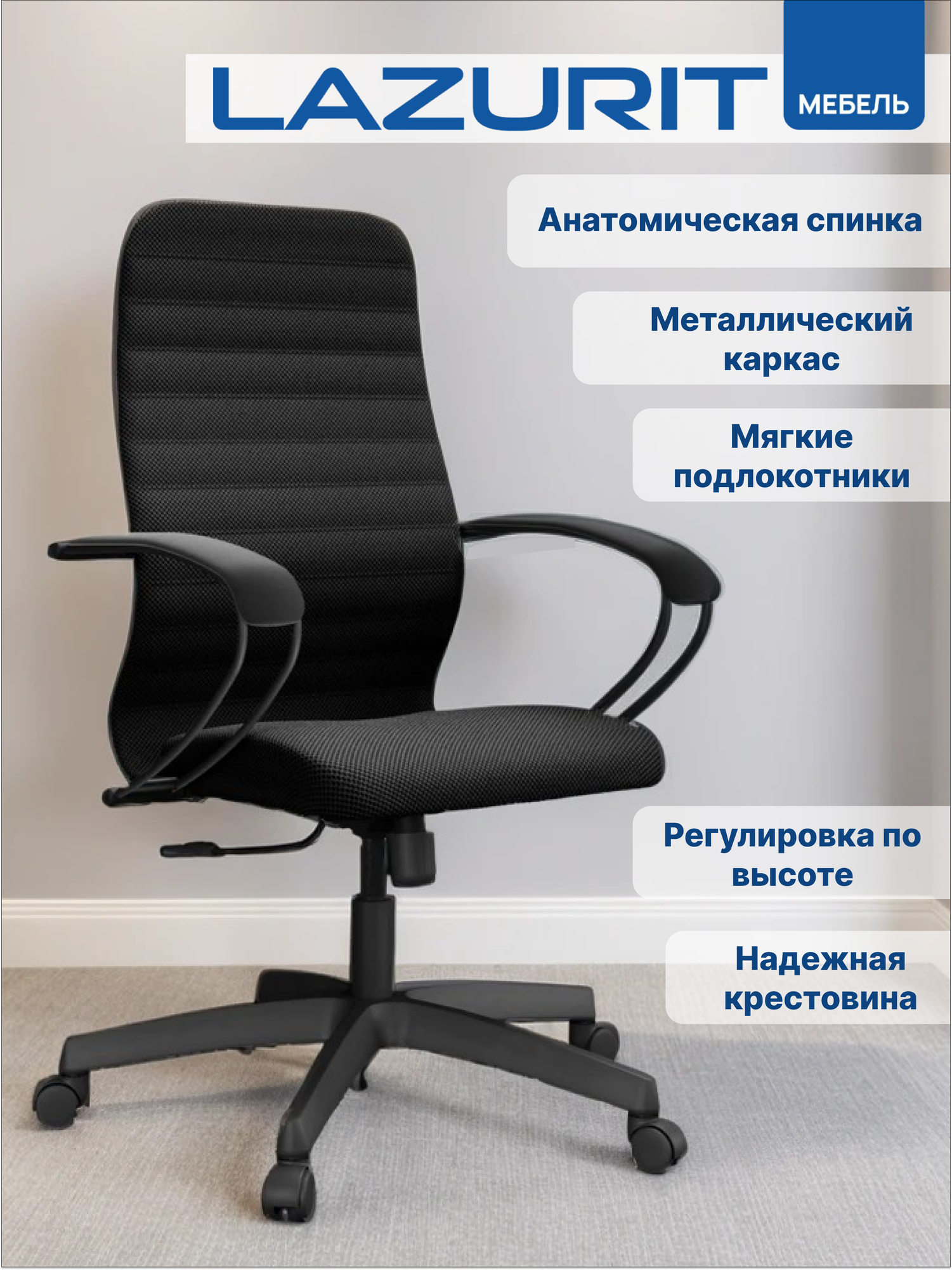Кресло компьютерное рабочее для руководителя и школьника Лидер от Lazurit крутящийся офисный стул на колесиках для работы за ПК ткань-сетка черный интересное: