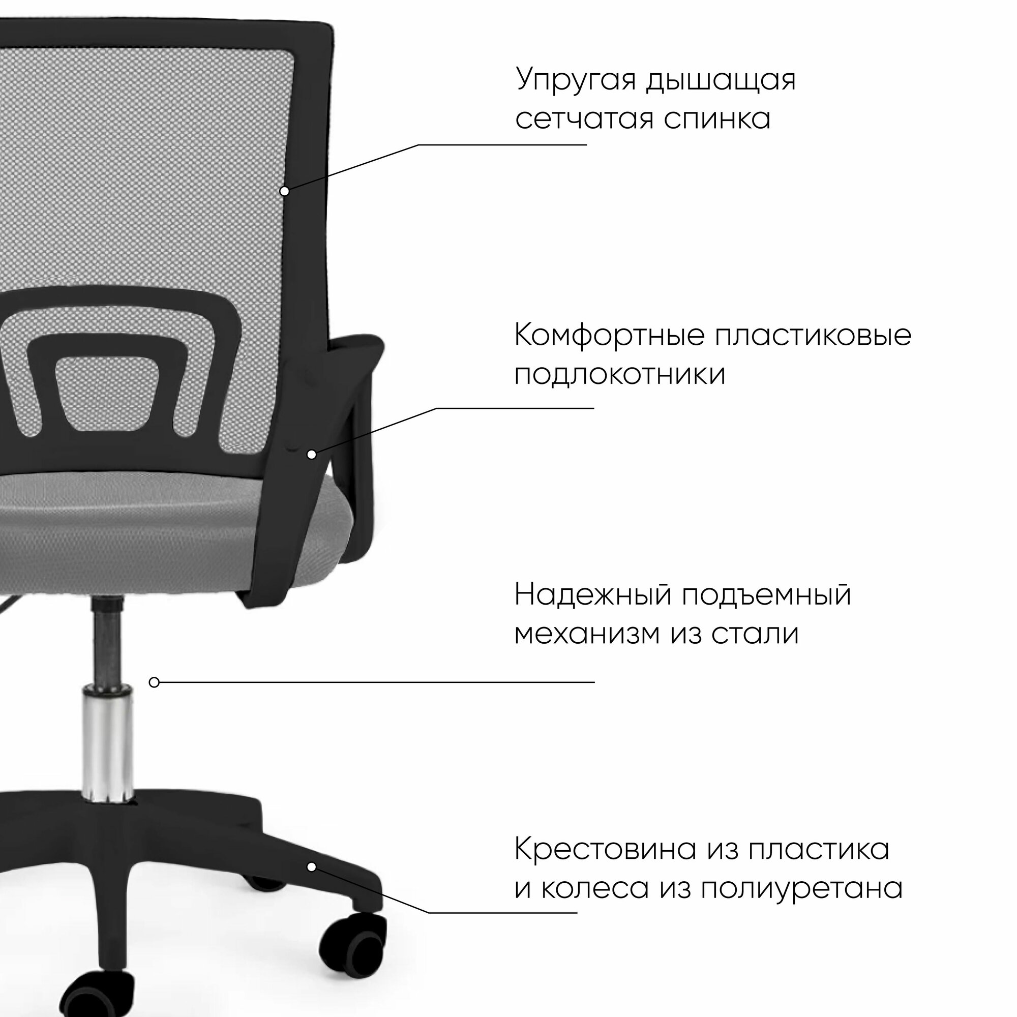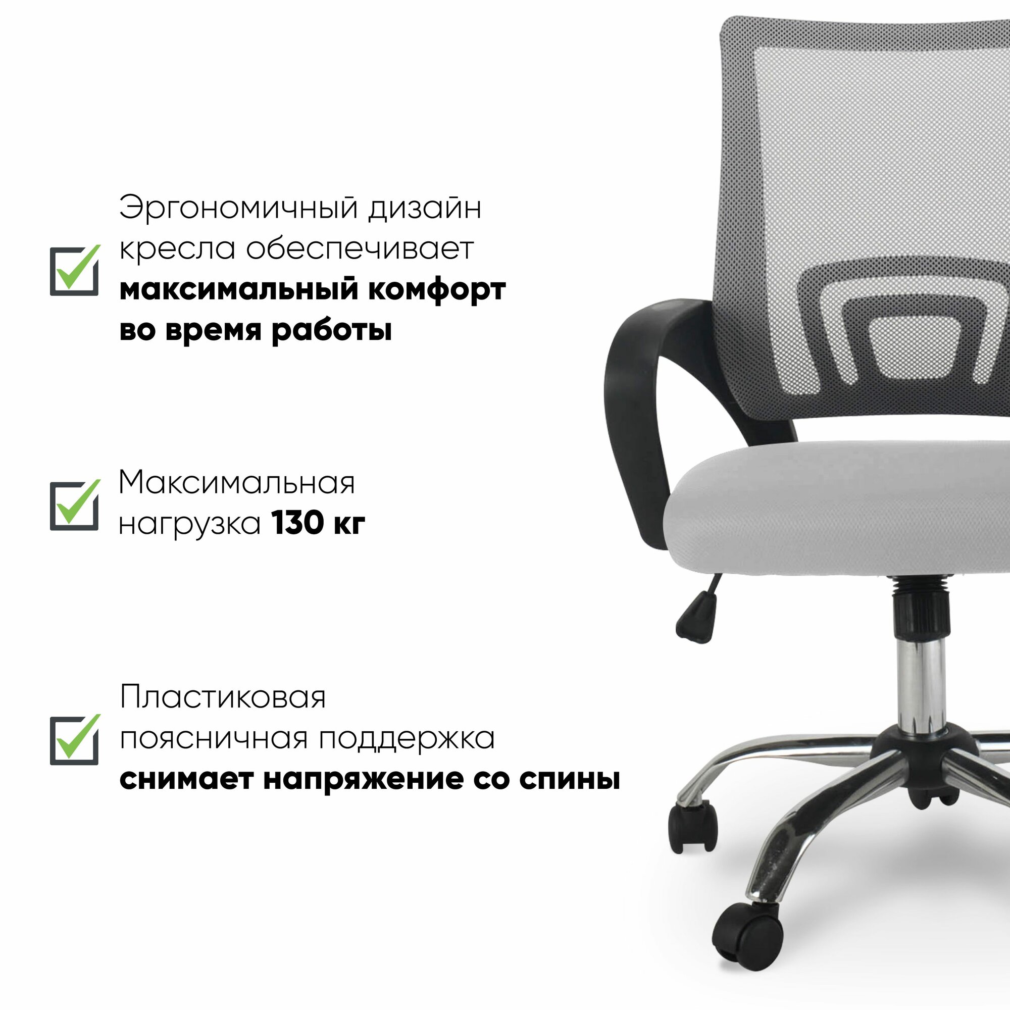 Кресло офисное эргономичное, Стул компьютерный рабочий игровой лофт BYROOM Office Staff VC6001plb-G, серое интересное: