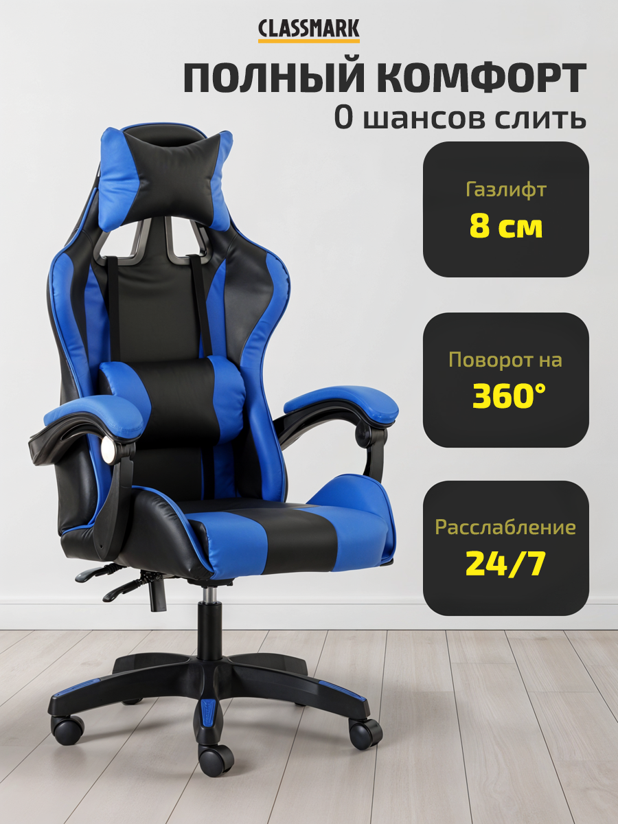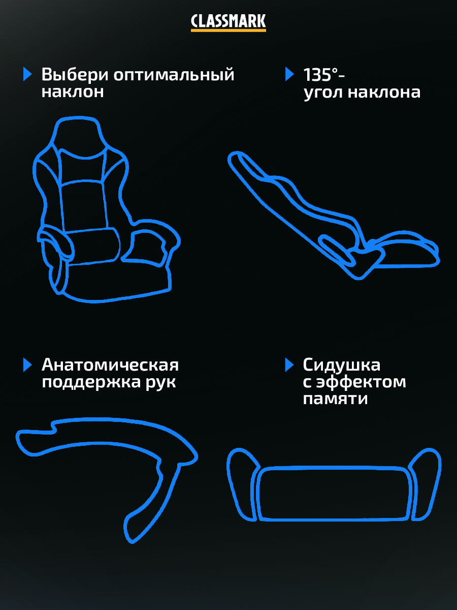 Кресло компьютерное игровое геймерское офисное на колесиках Classmark, газлифт, нагрузка 150 кг. интересное: