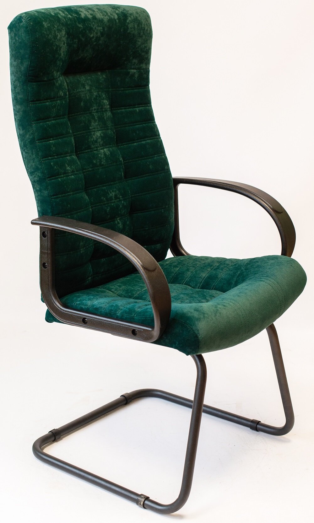 Офисное кресло на полозьях StylChairs Атлант Ультра, обивка велюр, цвет зелёный интересное: