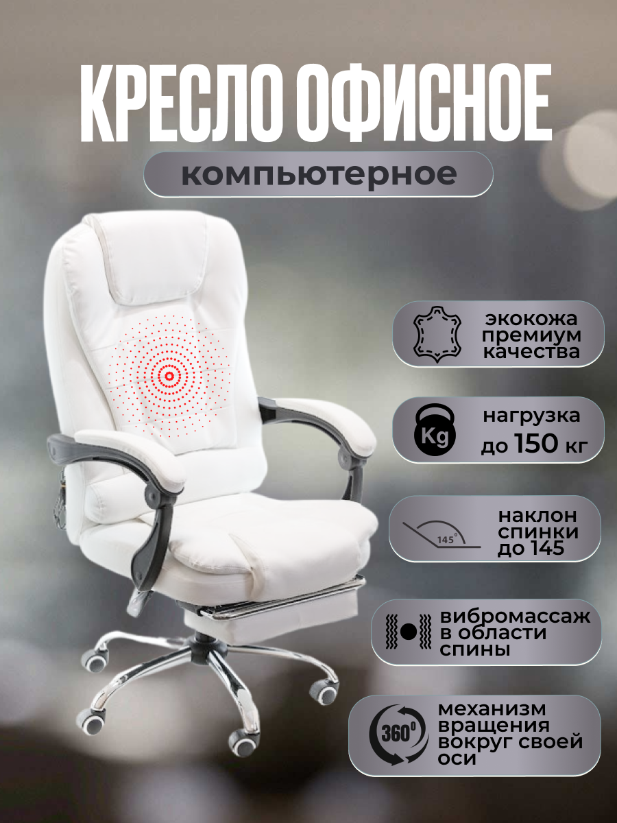 СохранитьКомпьютерное офисное кресло с функцией вибромассажа и подставкой под ноги, 6-06-Белое интересное: