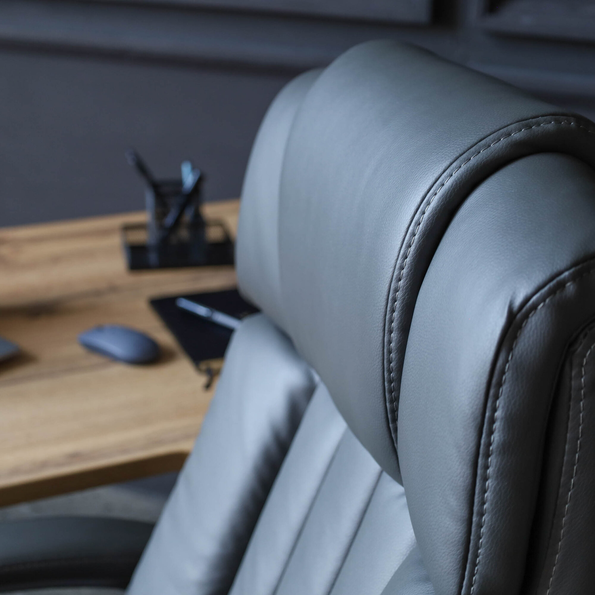 Компьютерное кресло руководителя, кресло офисное, Comiron CH-10M Ch Серая экокожа/ хром интересное: