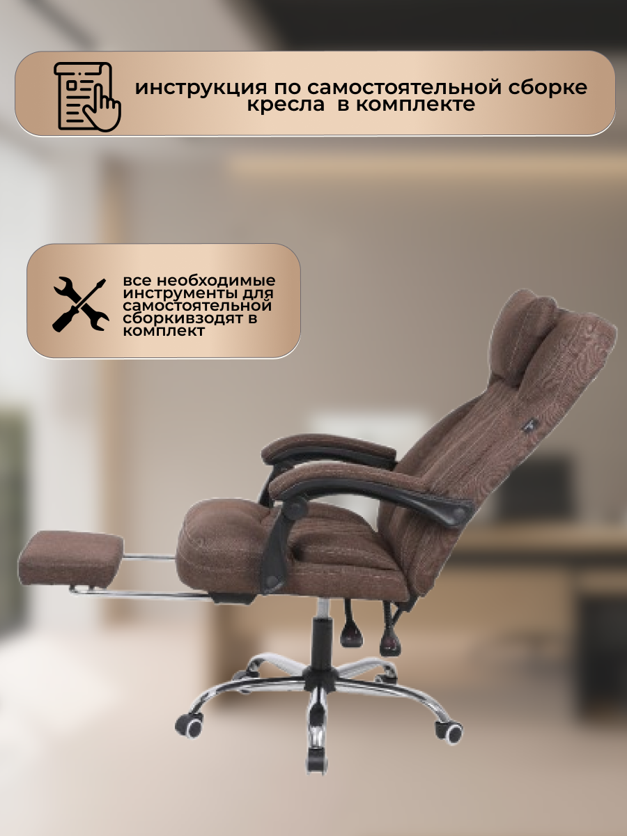 Компьютерное кресло офисное из премиальной ткани, с подставкой для ног, коричневого цвета интересное: