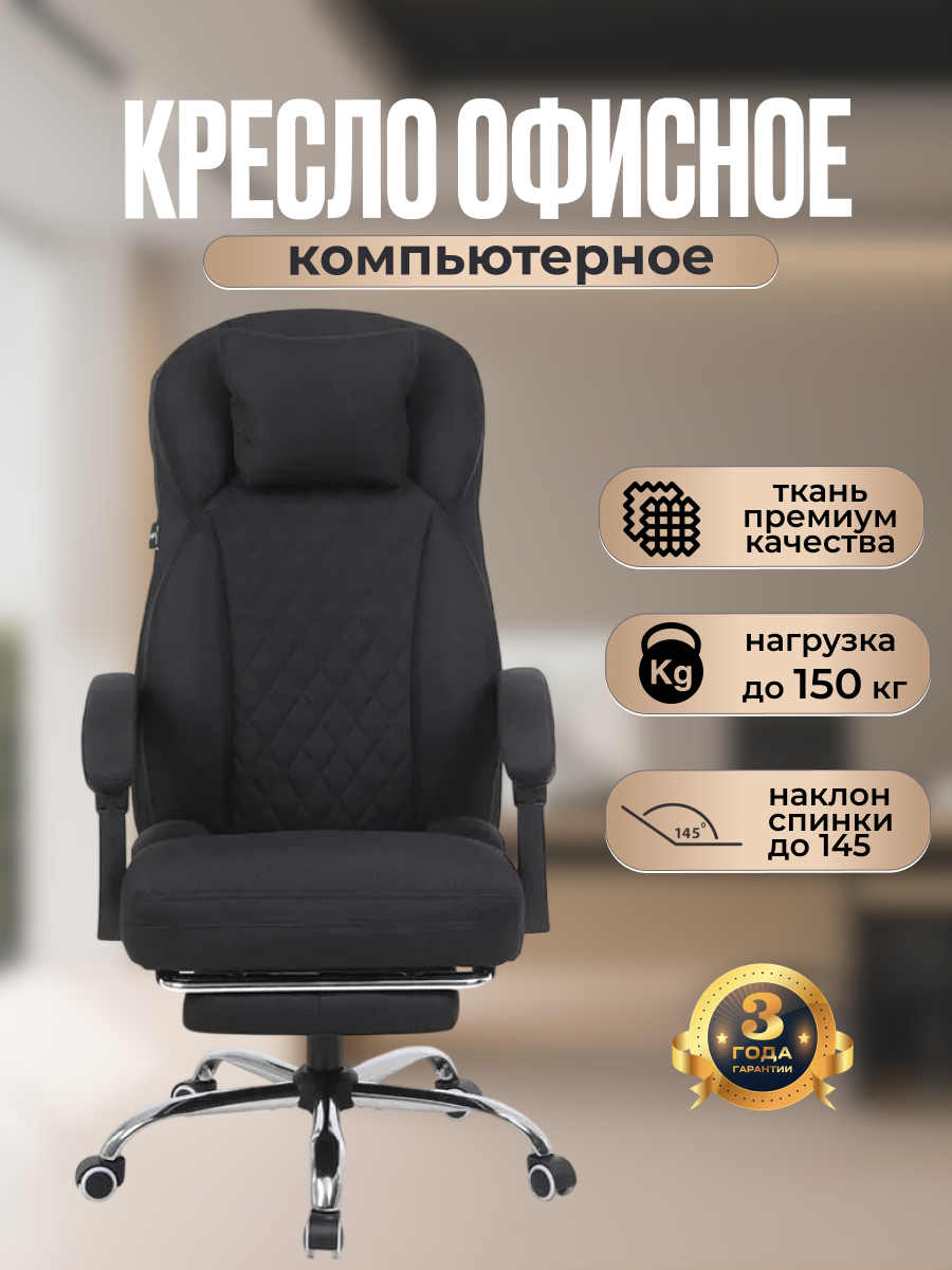 Компьютерное кресло офисное из премиальной ткани, с подставкой для ног, черного цвета интересное: