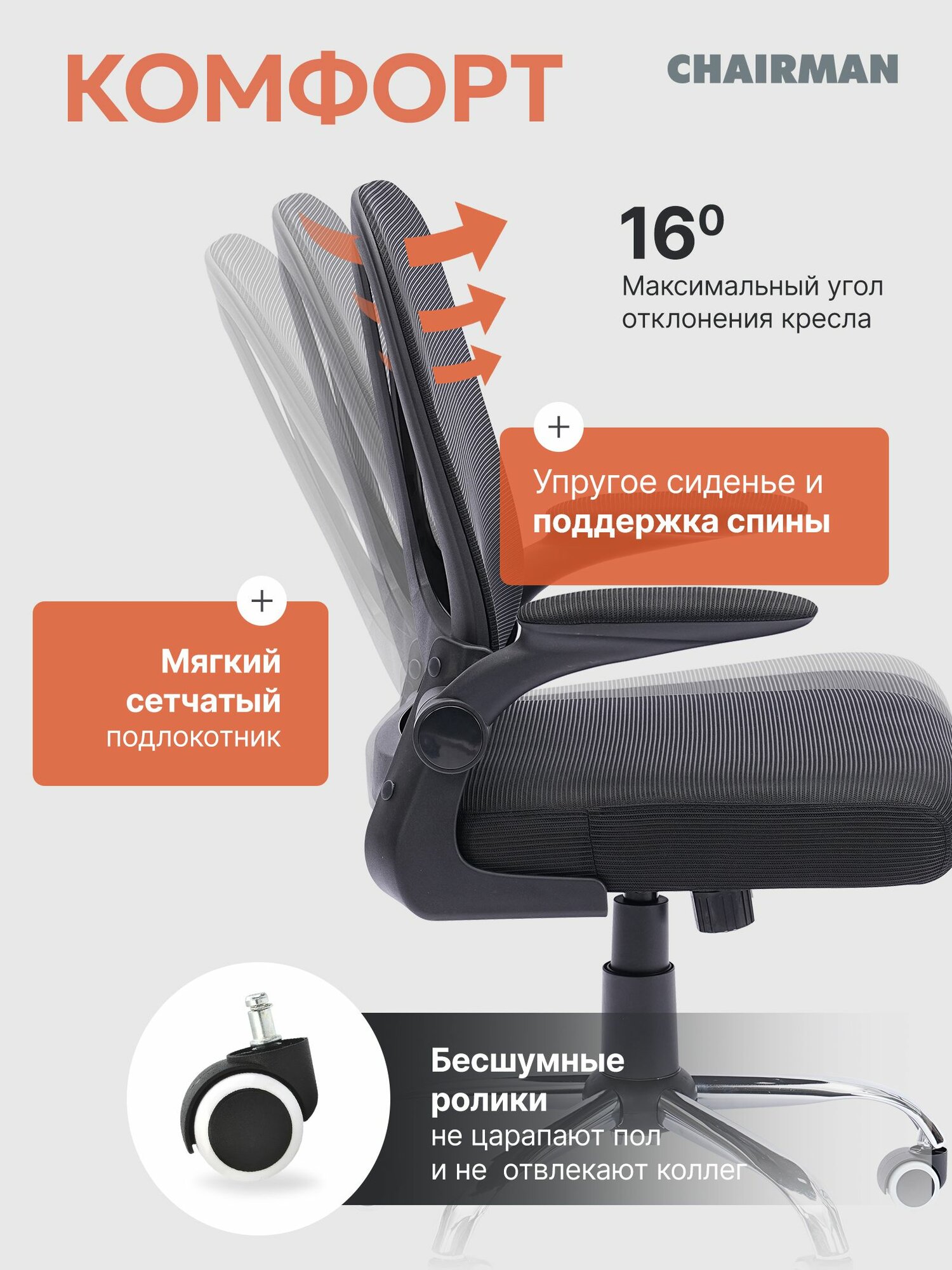 Компьютерное кресло для школьников CHAIRMAN CH 650 ткань/сетка, черный, с откидными подлокотниками и механизмом качания интересное: