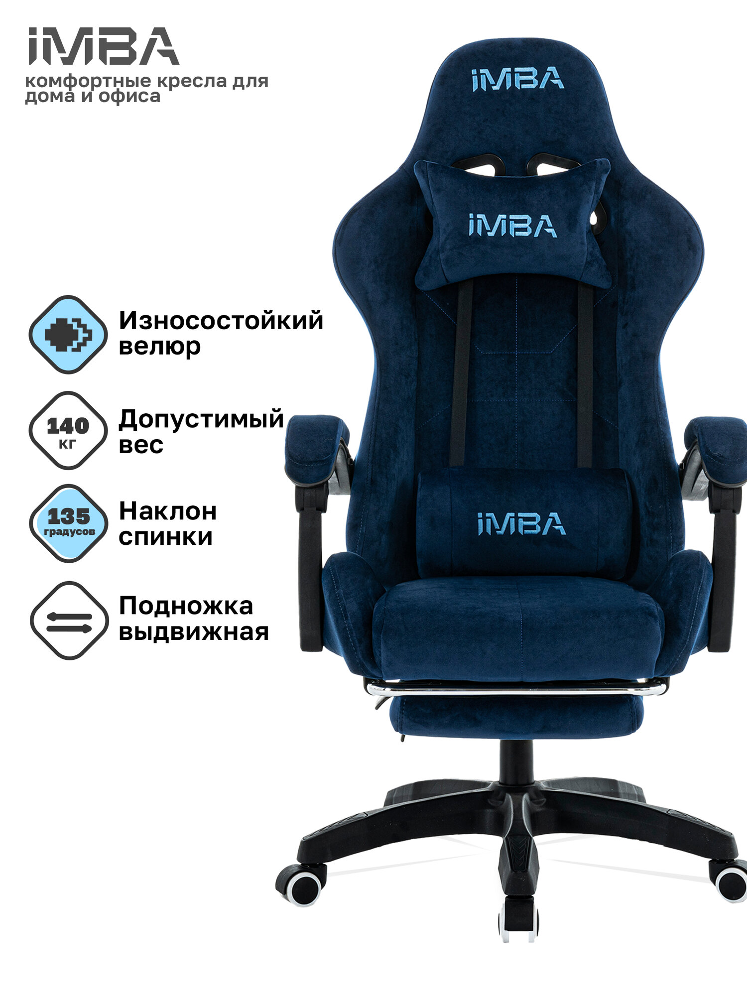 Купить Кресло компьютерное IMBA, игровое, геймерское, с подставкой для ног, подголовником и подлокотниками, велюр