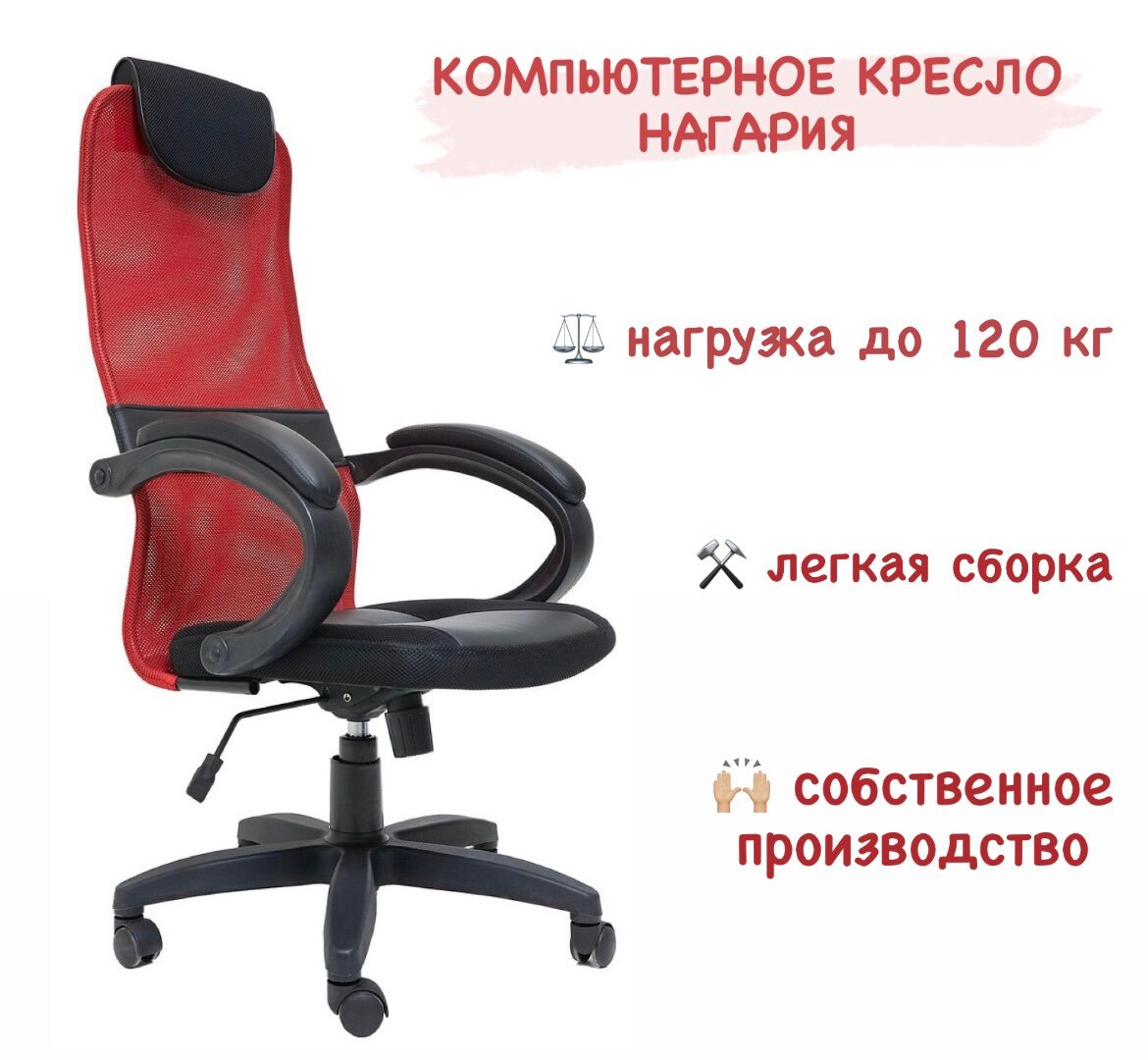 Кресло руководителя компьютерное офисное Нагария 508 ткань сетка черный-красный интересное: