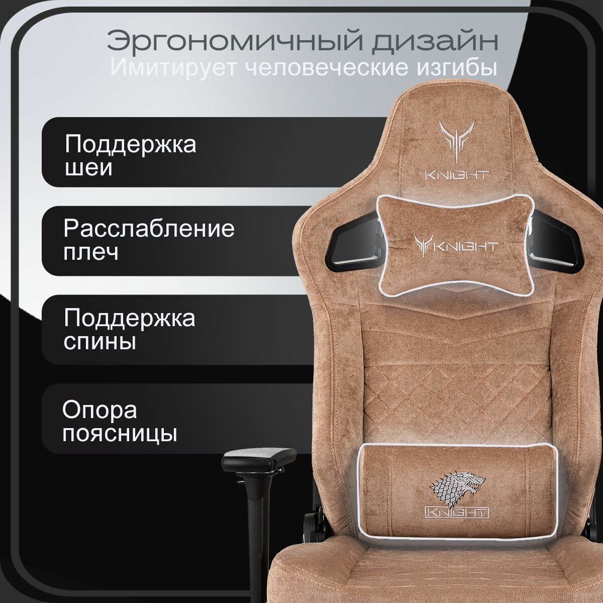 Кресло игровое компьютерное Knight Hunter светло-коричневый Velvet 90 крестов. металл интересное: