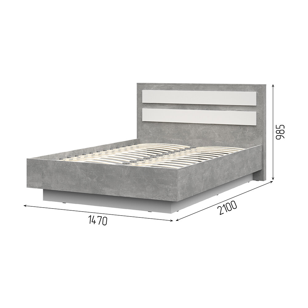 Кровать 1,4х2,0 Денвер КР-04 (1472х990х2100) цвет Ателье светлый/белый Стендмебель