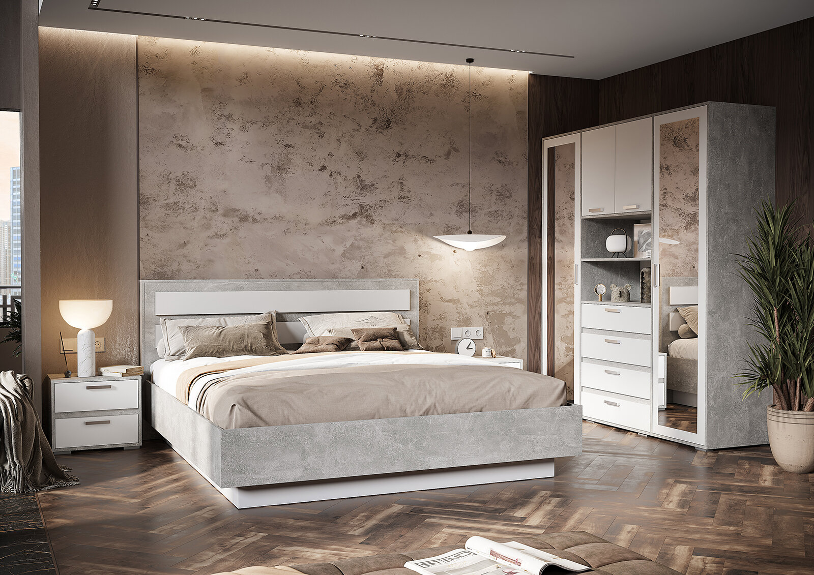 Кровать 1,8х2,0 Денвер КР-03 (1872х990х2100) цвет Ателье светлый/белый Стендмебель