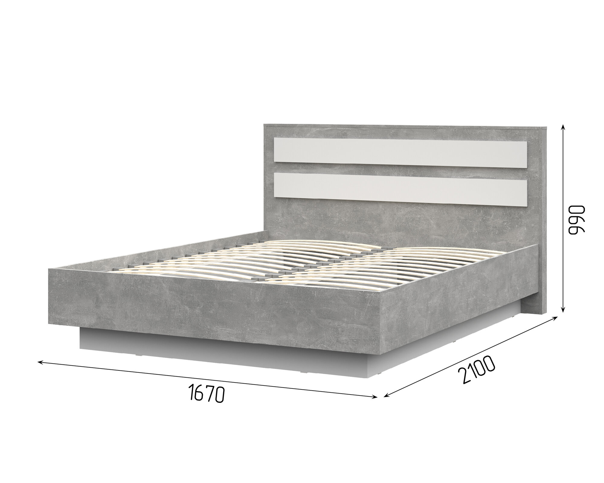 СохранитьКровать 1,6х2,0 Денвер КР-02 (1672х990х2100) цвет Ателье светлый/белый Стендмебель интересное: