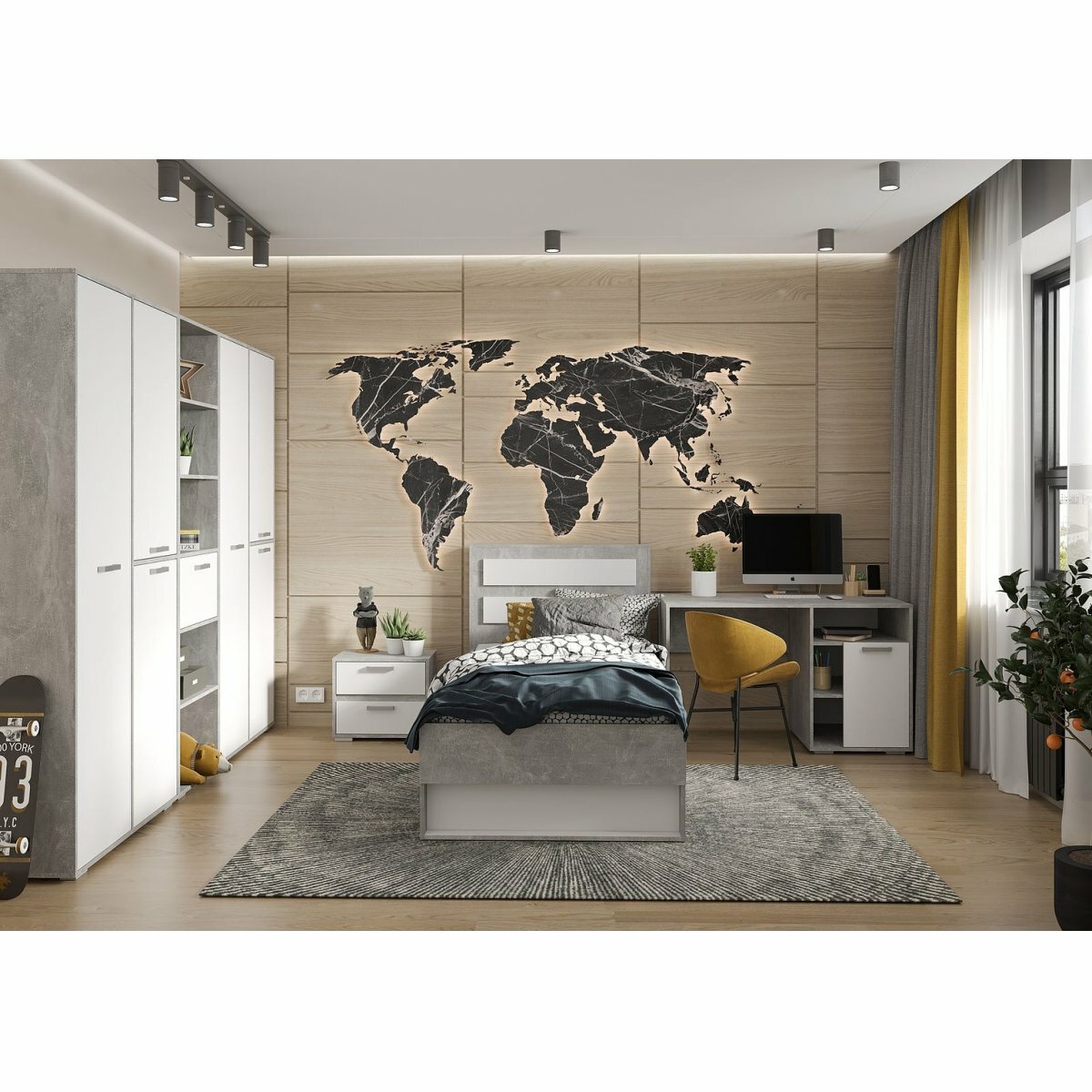 Кровать односпальная «Денвер» КР-03, 80х200, ателье светлый/белый (1872х2110х990)