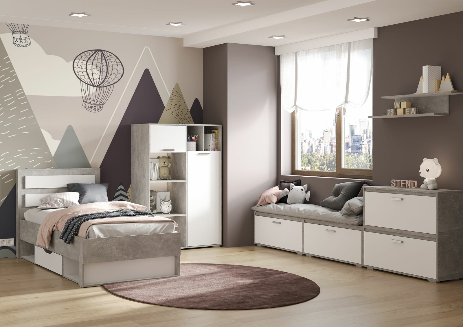 Кровать 0,9х2,0 Денвер КР-01 (970х986х2110) цвет Ателье светлый/белый Стендмебель
