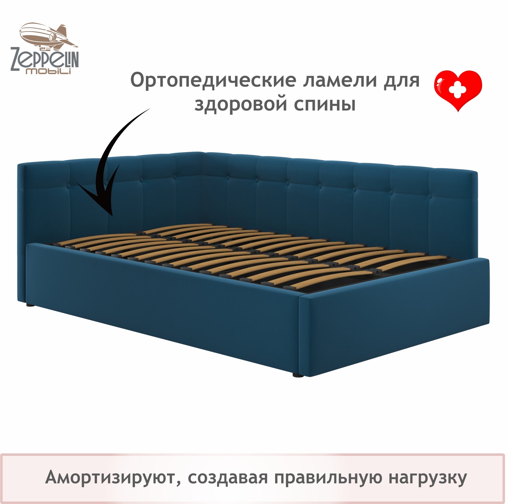 СохранитьКровать-тахта угловая Bonna 120х200 синяя ортопедическая, мягкая спинка из велюра, с ламелями интересное:
