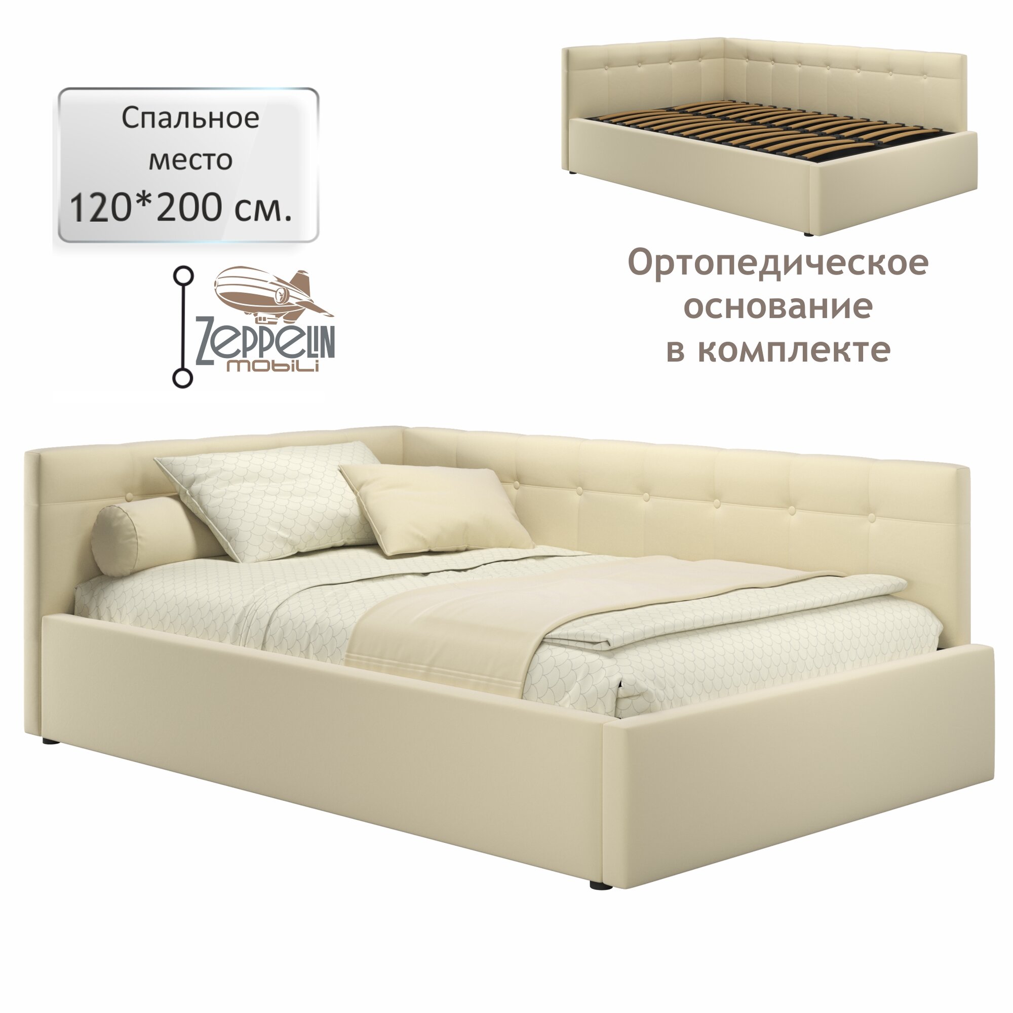 Купить Кровать-тахта угловая Bonna 120х200 бежевая ортопедическая, мягкая спинка из велюра, с ламелями