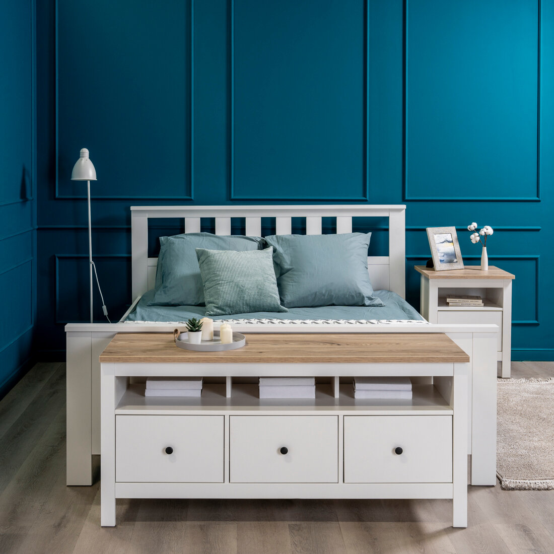 Кровать двуспальная ГУД ЛАКК "сага", 140х200х101 см, ортопедические ламели, белая/ясень