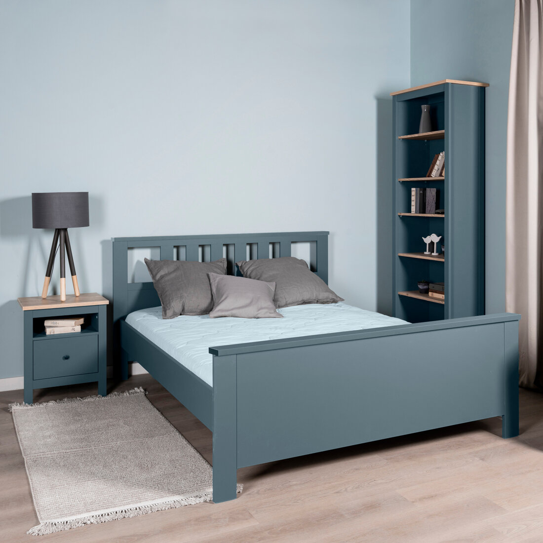 Кровать двуспальная ГУД ЛАКК "сага", 140х200х101 см, ортопедические ламели, темно-бирюзовая/ясень