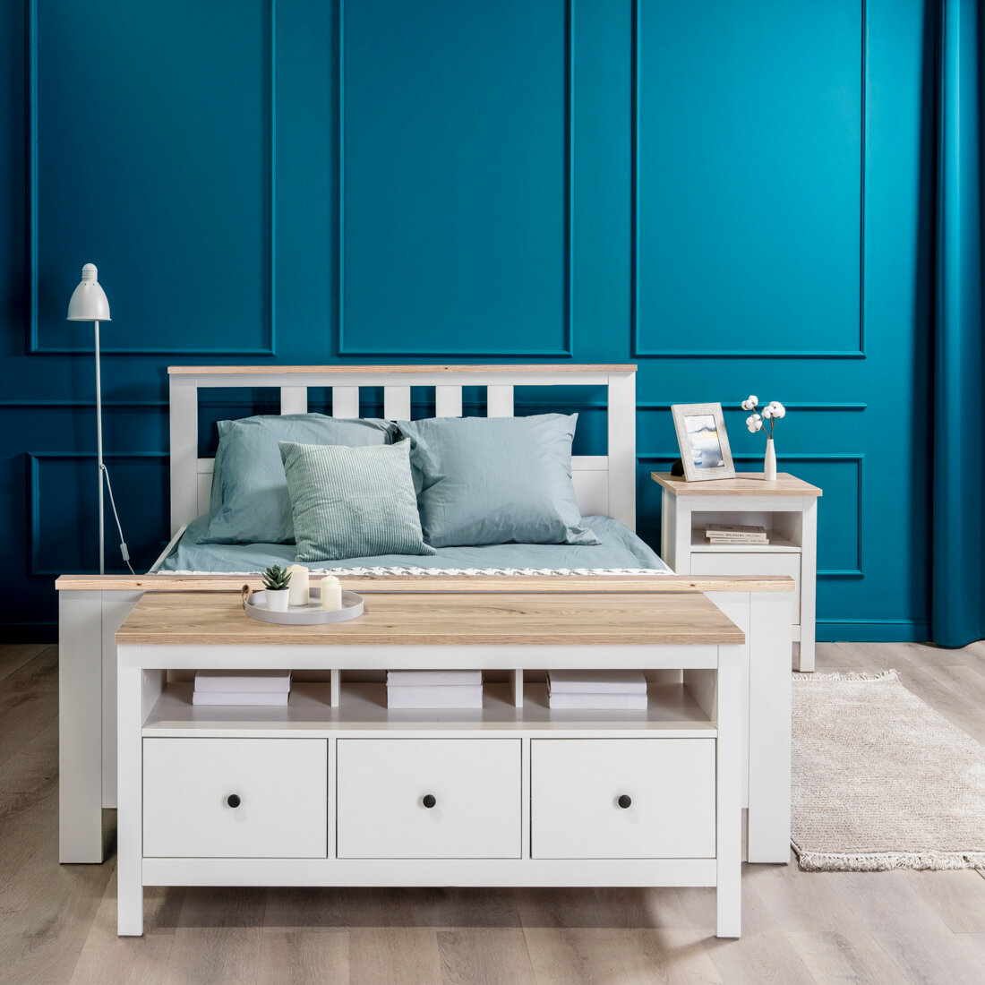 Кровать с ящиками 1800 с двумя тумбочками Камелия, цвет дуб сонома, ШхГхВ 296х217х78,2 см, спальное место 1800х2000 мм, без матраса, основание есть