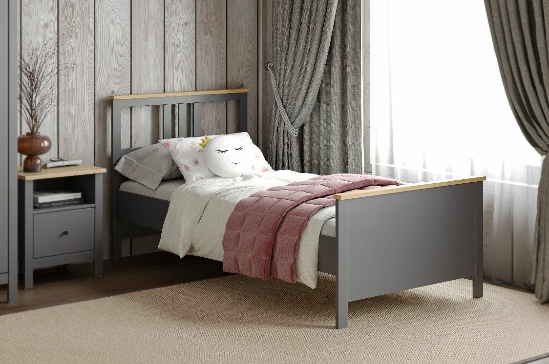 Кровать односпальная ГУД ЛАКК "сага", 90x200х101 см, ортопедические ламели, серая
