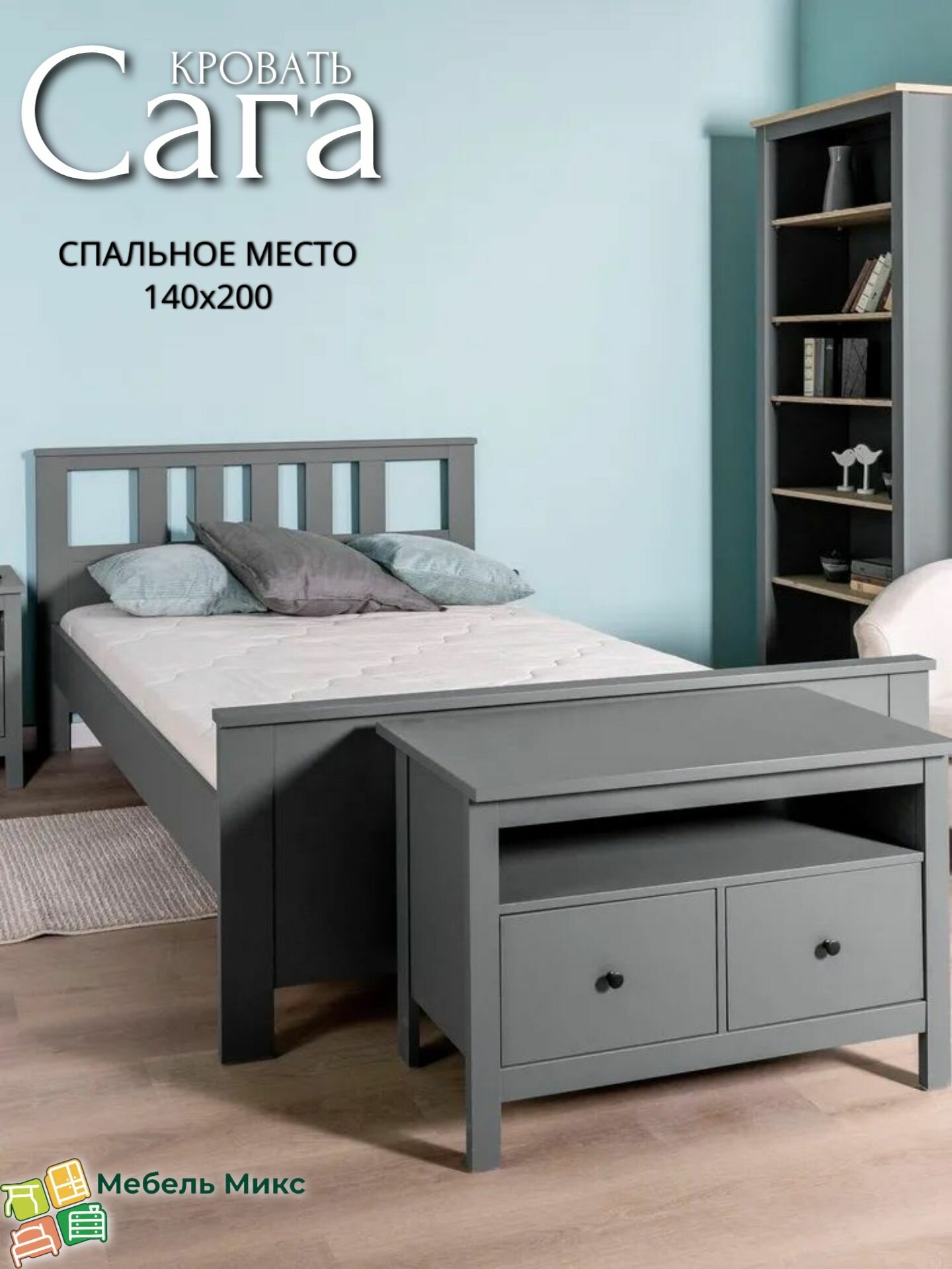 Сага кровать двойная 140х200 серая