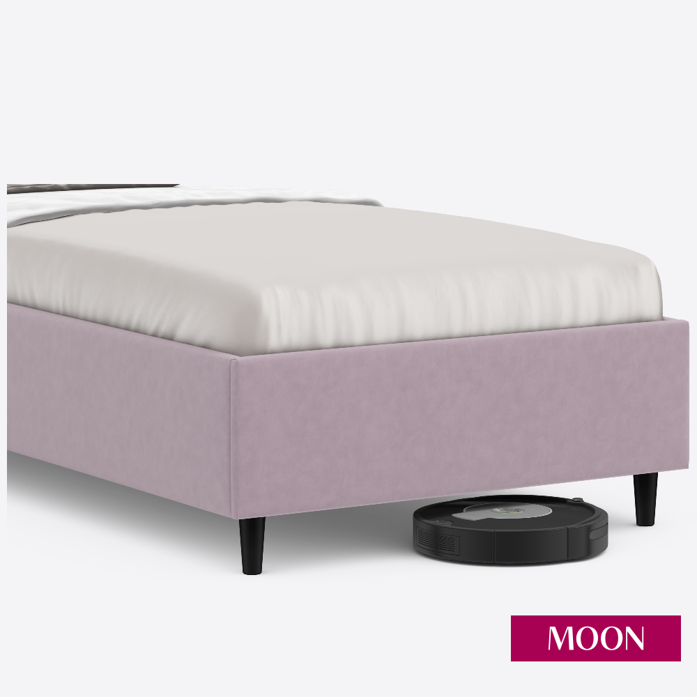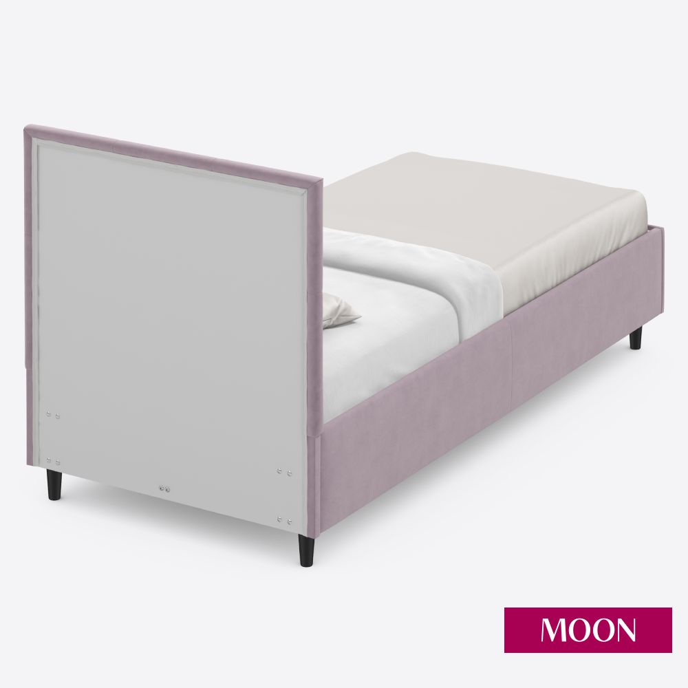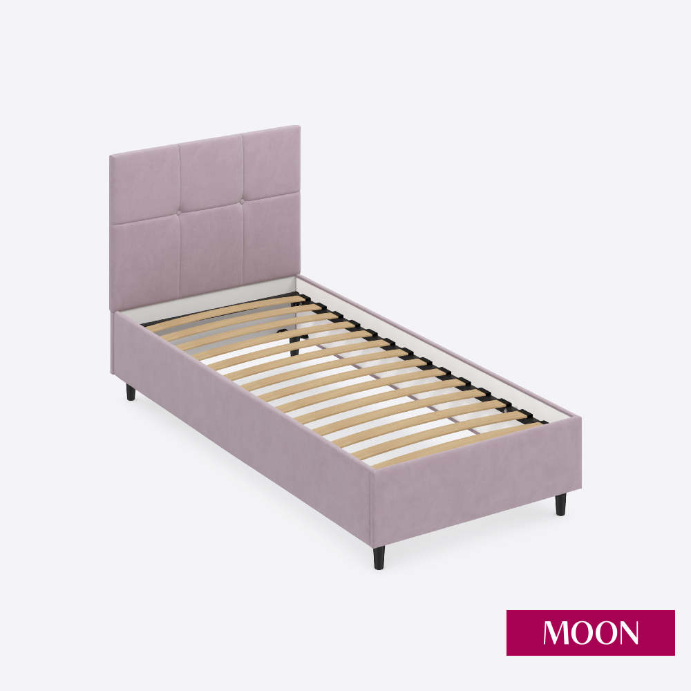 СохранитьКровать односпальная без подъемного механизма на ножках MOON FAMILY 1261, размер 90х200 см, велюр розовый. Ортопедическое основание в комплекте интересное: