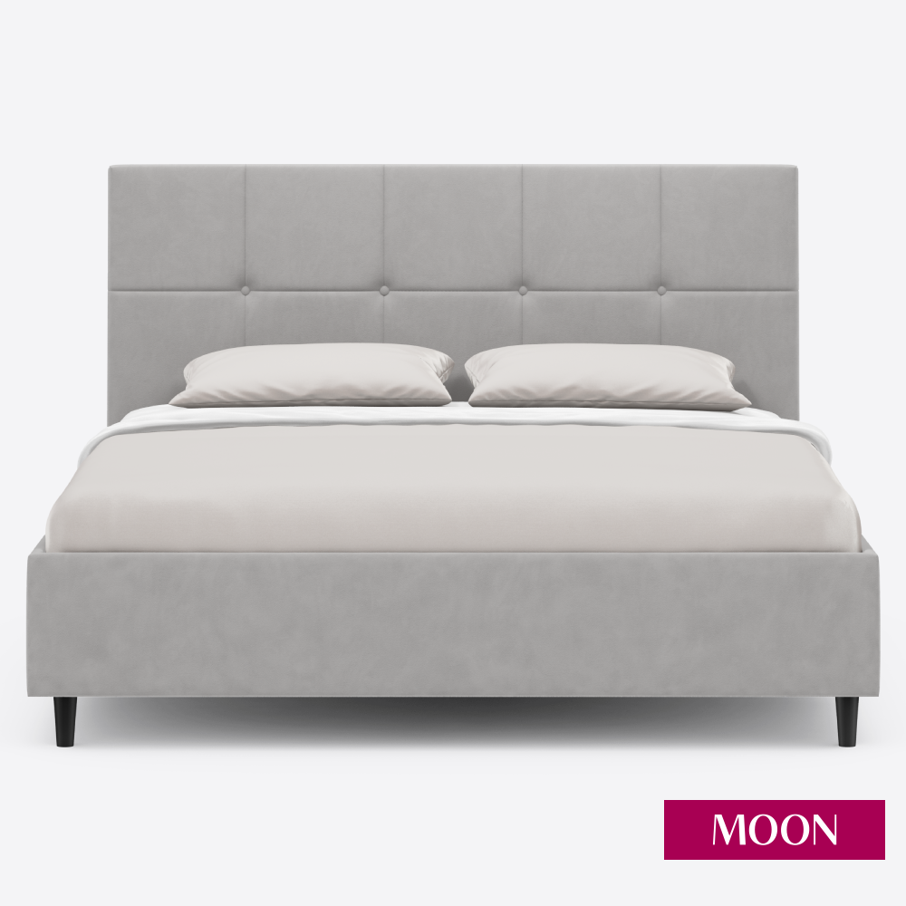 Купить Кровать двуспальная без подъемного механизма на ножках MOON FAMILY 1261, размер 140х200 см, велюр светло-серый. Ортопедическое основание в комплекте