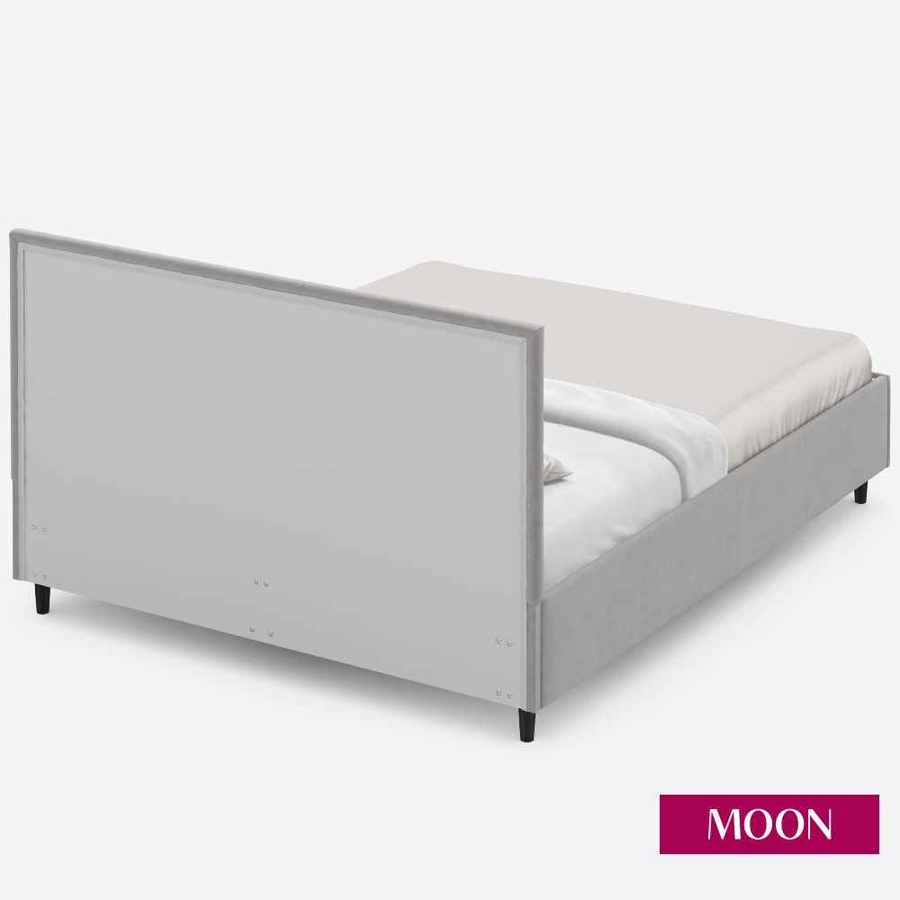 СохранитьКровать двуспальная без подъемного механизма на ножках MOON FAMILY 1261, размер 140х200 см, велюр светло-серый. Ортопедическое основание в комплекте интересное: