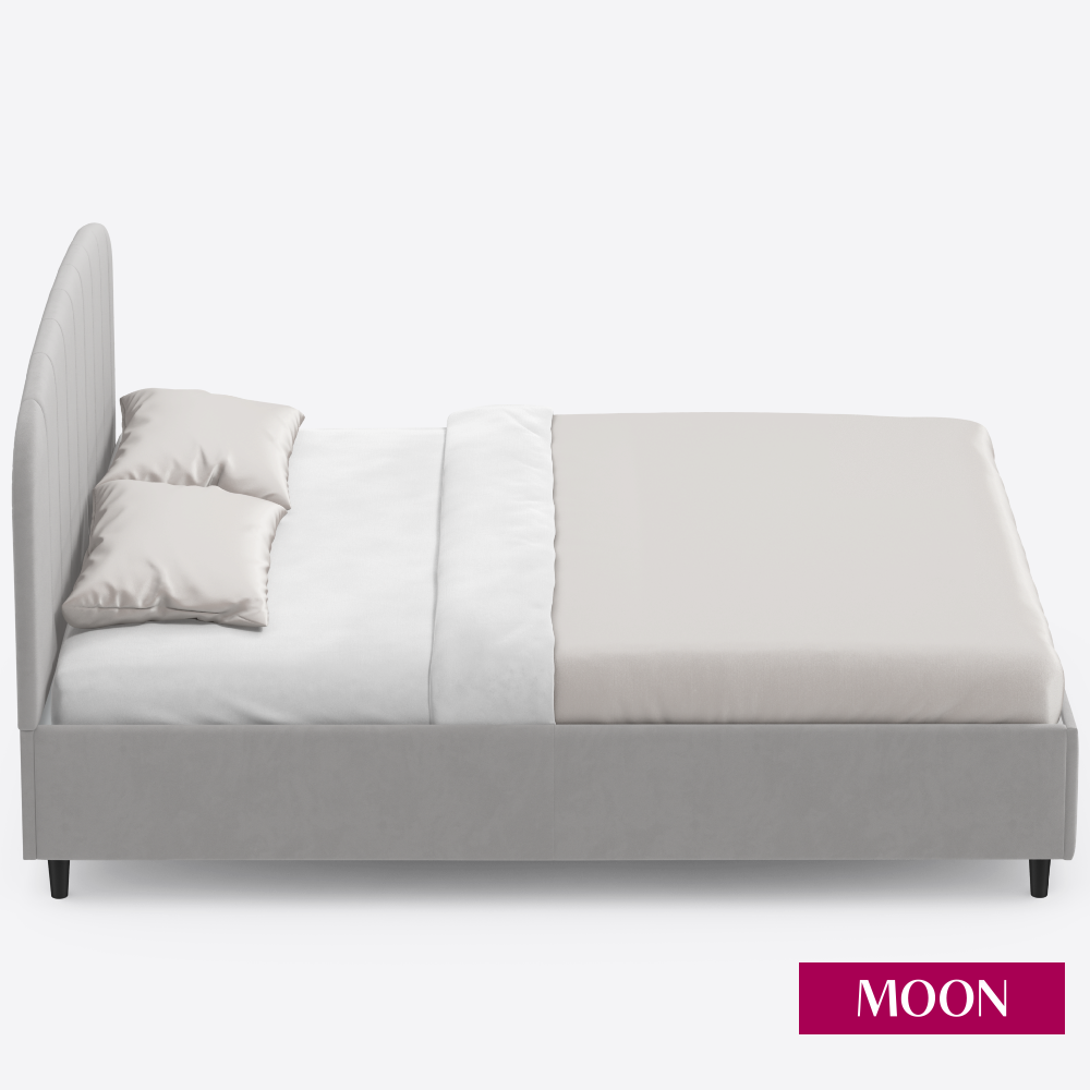 СохранитьКровать двуспальная без подъемного механизма на ножках, MOON FAMILY 1262, размер 140х200 см, велюр светло-серый. Ортопедическое основание в комплекте интересное: