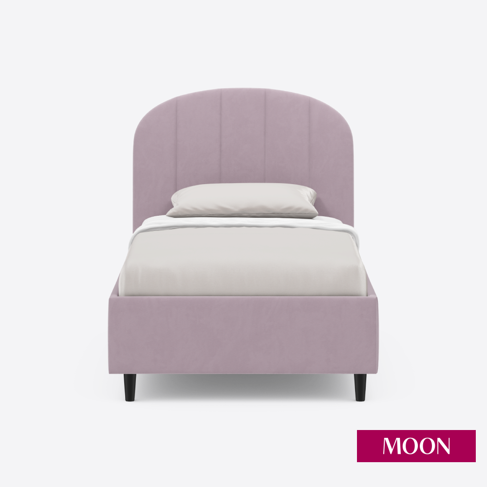 Купить Кровать односпальная без подъемного механизма на ножках, MOON FAMILY 1262, размер 90х200 см, велюр розовый. Ортопедическое основание в комплекте