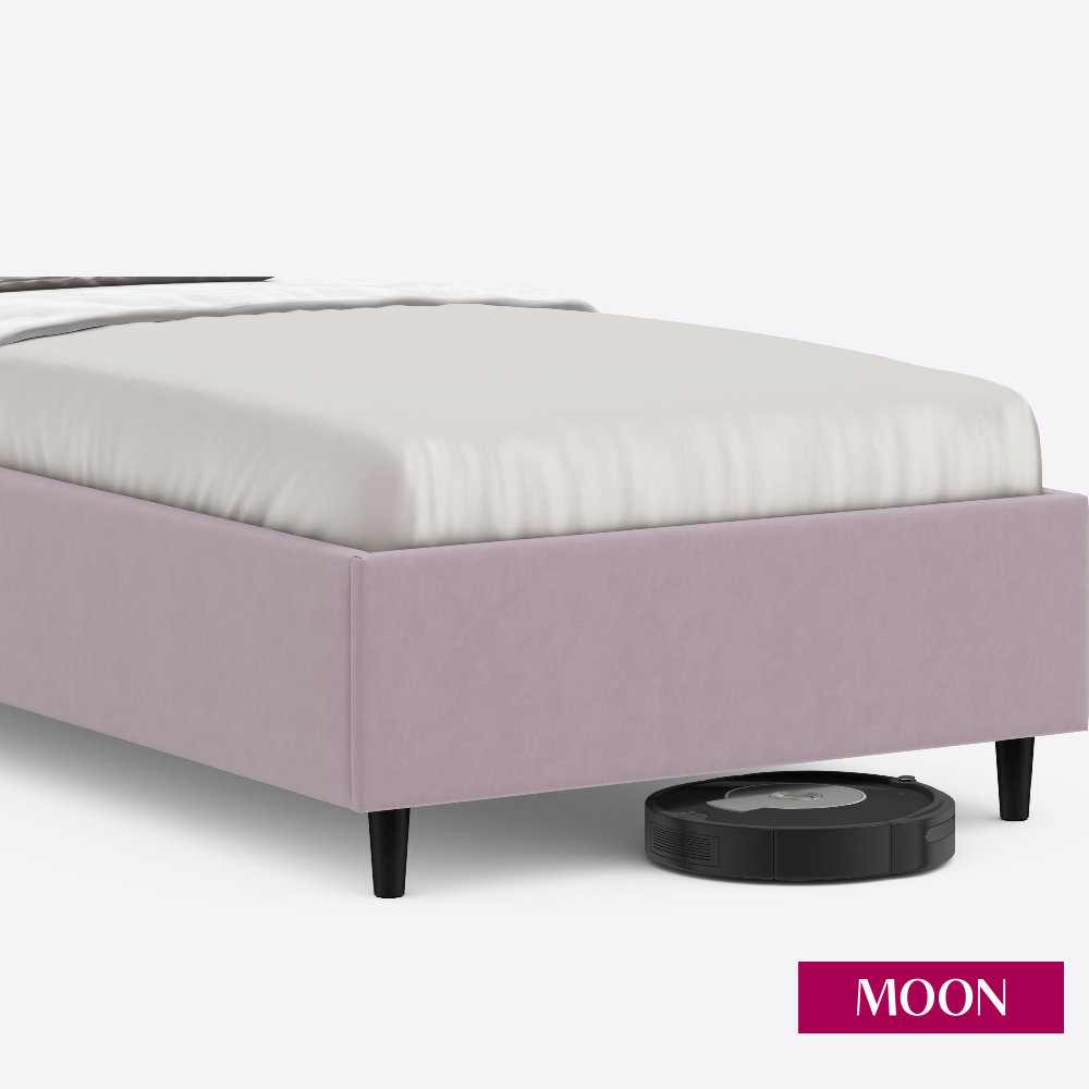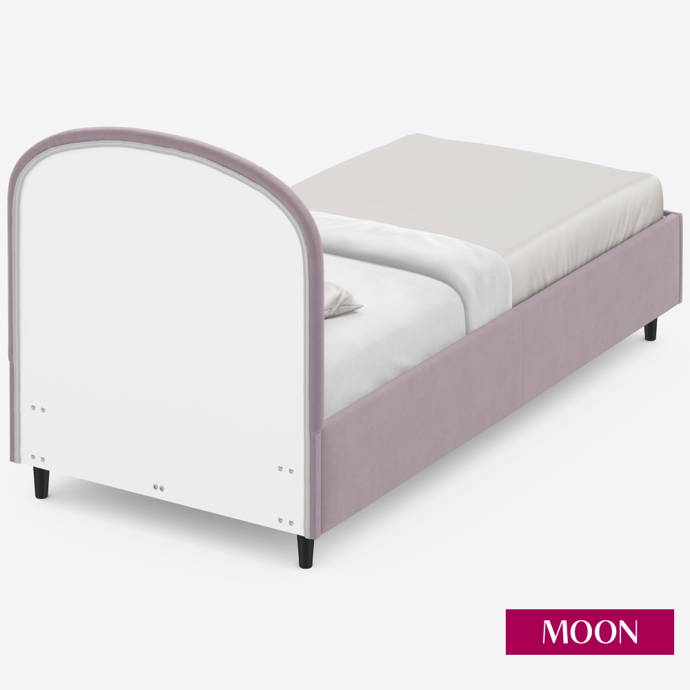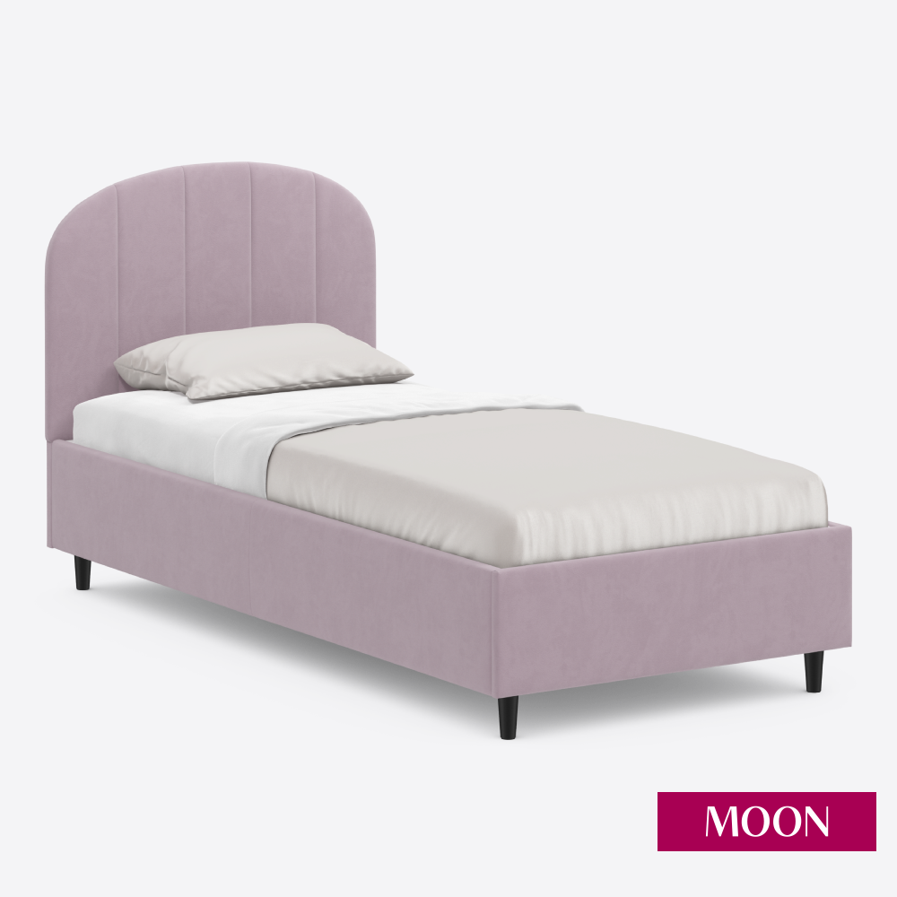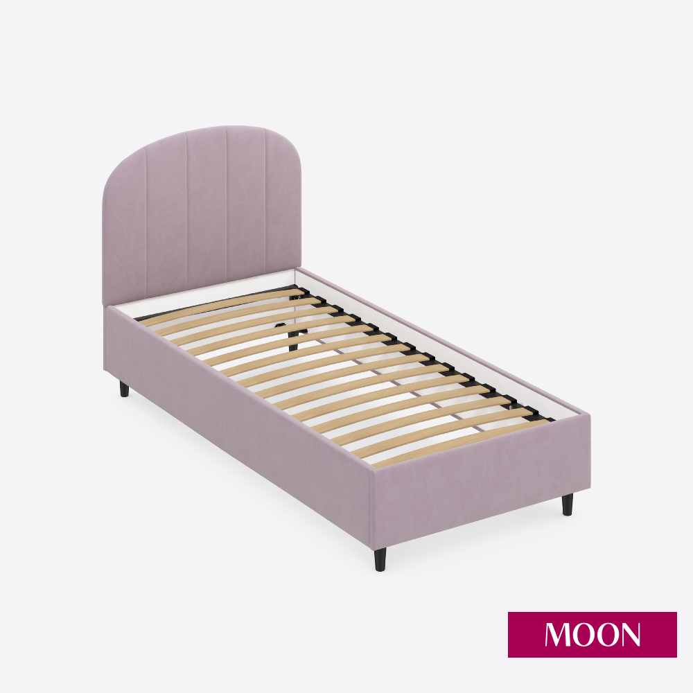 СохранитьКровать односпальная без подъемного механизма на ножках, MOON FAMILY 1262, размер 90х200 см, велюр розовый. Ортопедическое основание в комплекте интересное: