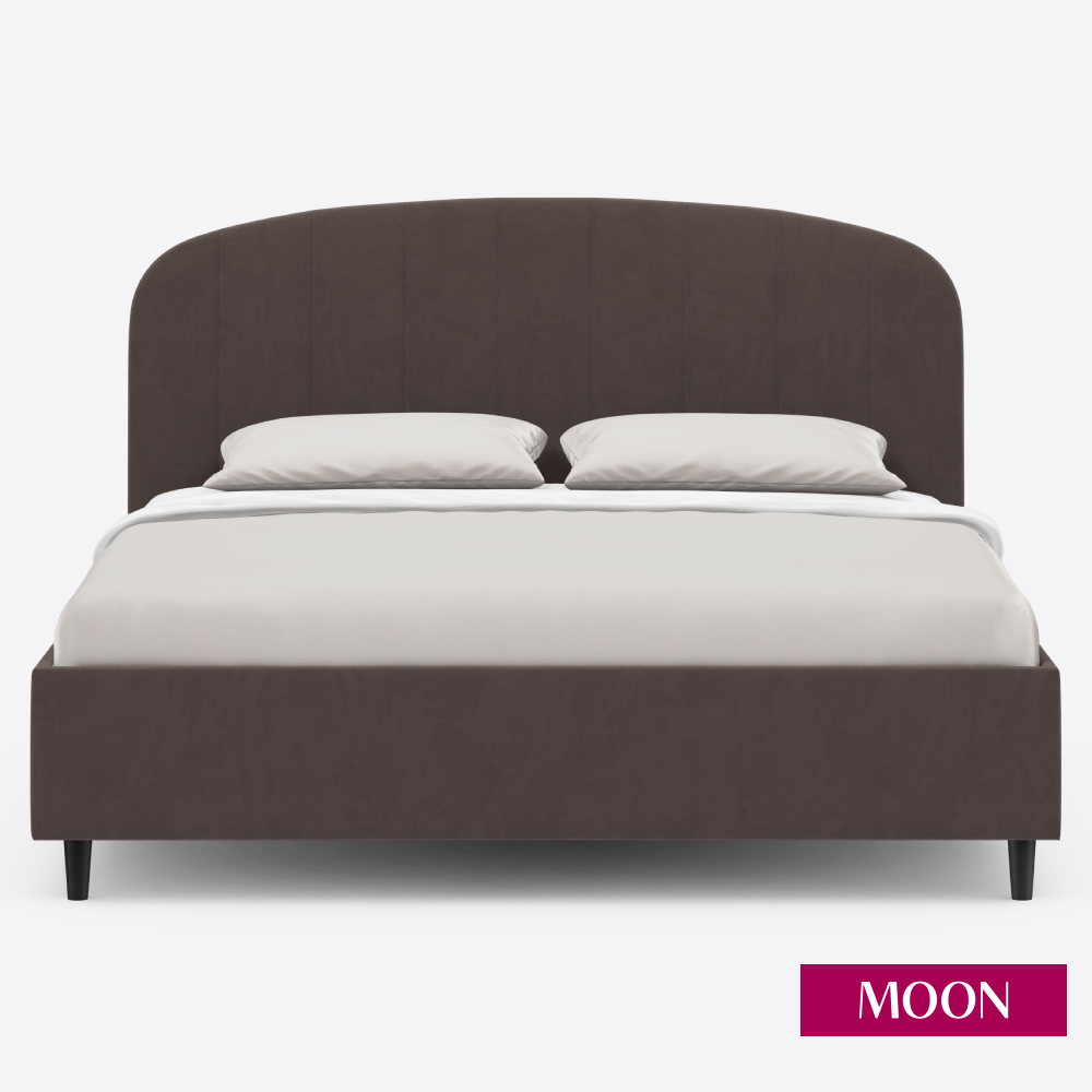 Кровать двуспальная без подъемного механизма на ножках, MOON FAMILY 1262, размер 180х200 см, велюр коричневый перламутровый. Ортопедическое основание в комплекте