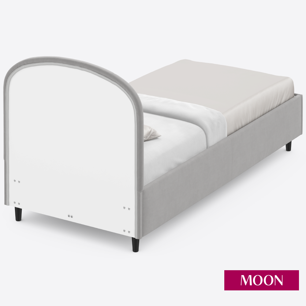 СохранитьКровать односпальная без подъемного механизма на ножках, MOON FAMILY 1262, размер 90х200 см, велюр светло-серый. Ортопедическое основание в комплекте интересное: