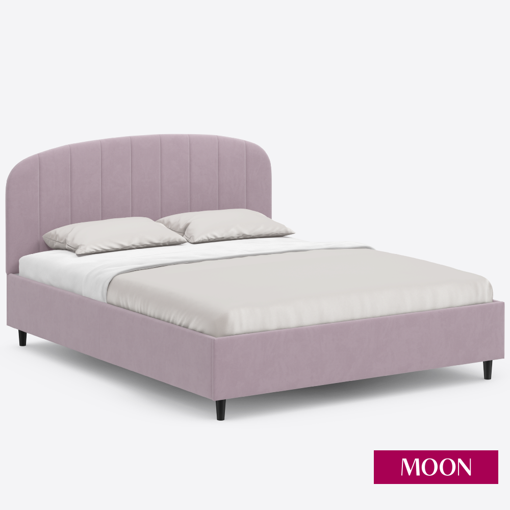 Кровать двуспальная без подъемного механизма на ножках, MOON FAMILY 1262, размер 180х200 см, велюр розовый. Ортопедическое основание в комплекте