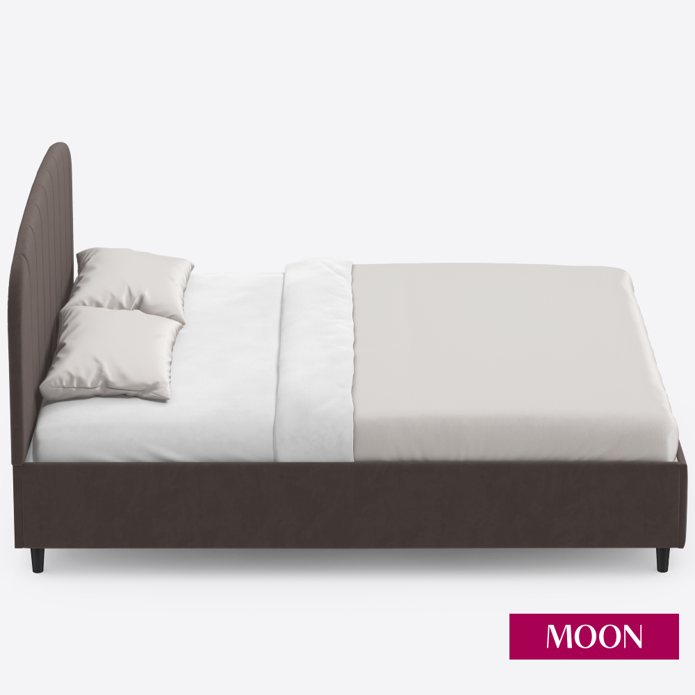 Кровать двуспальная без подъемного механизма на ножках, MOON FAMILY 1262, размер 140х200 см, велюр коричневый перламутровый. Ортопедическое основание в комплекте