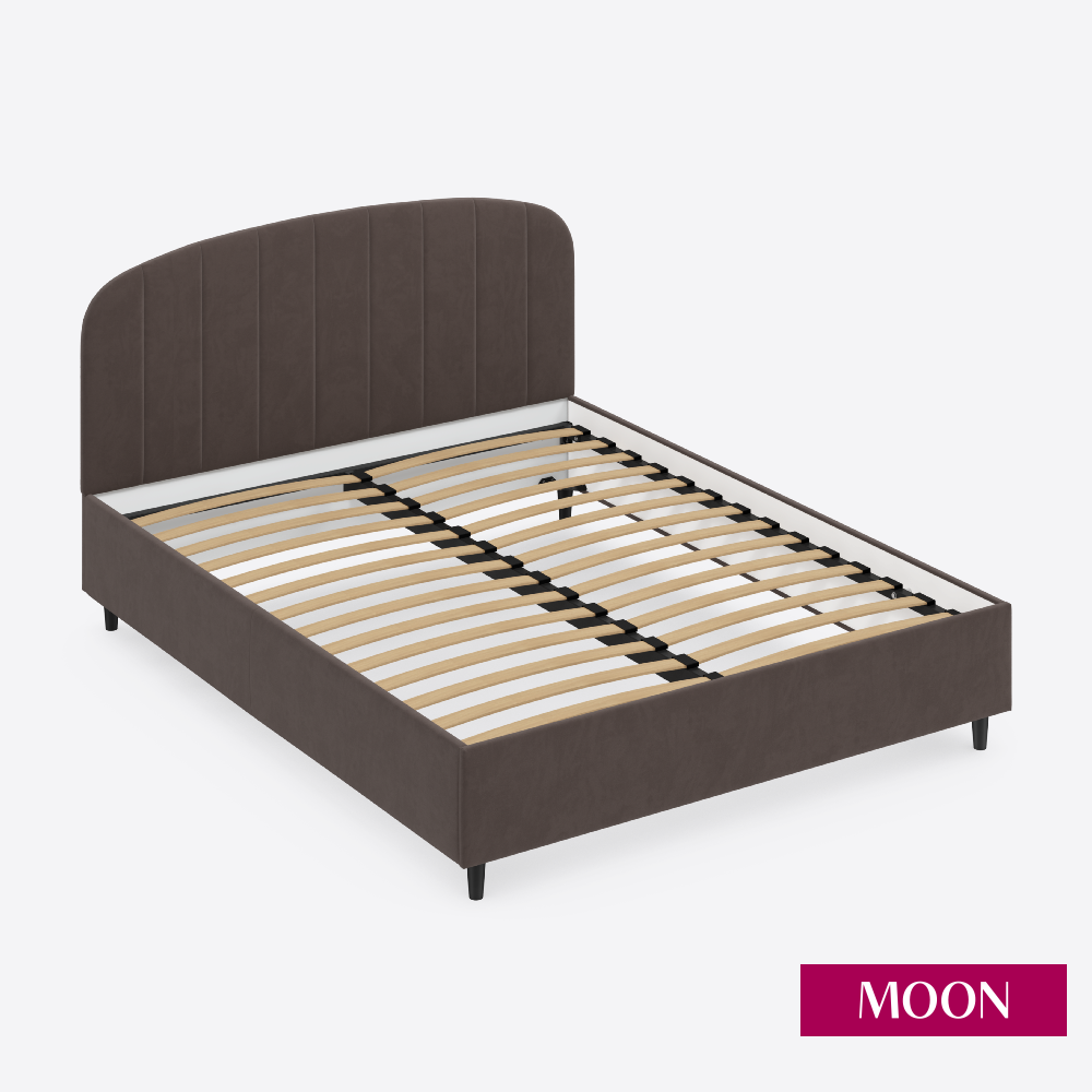 Кровать двуспальная без подъемного механизма на ножках, MOON FAMILY 1262, размер 160х200 см, велюр коричневый перламутровый. Ортопедическое основание в комплекте