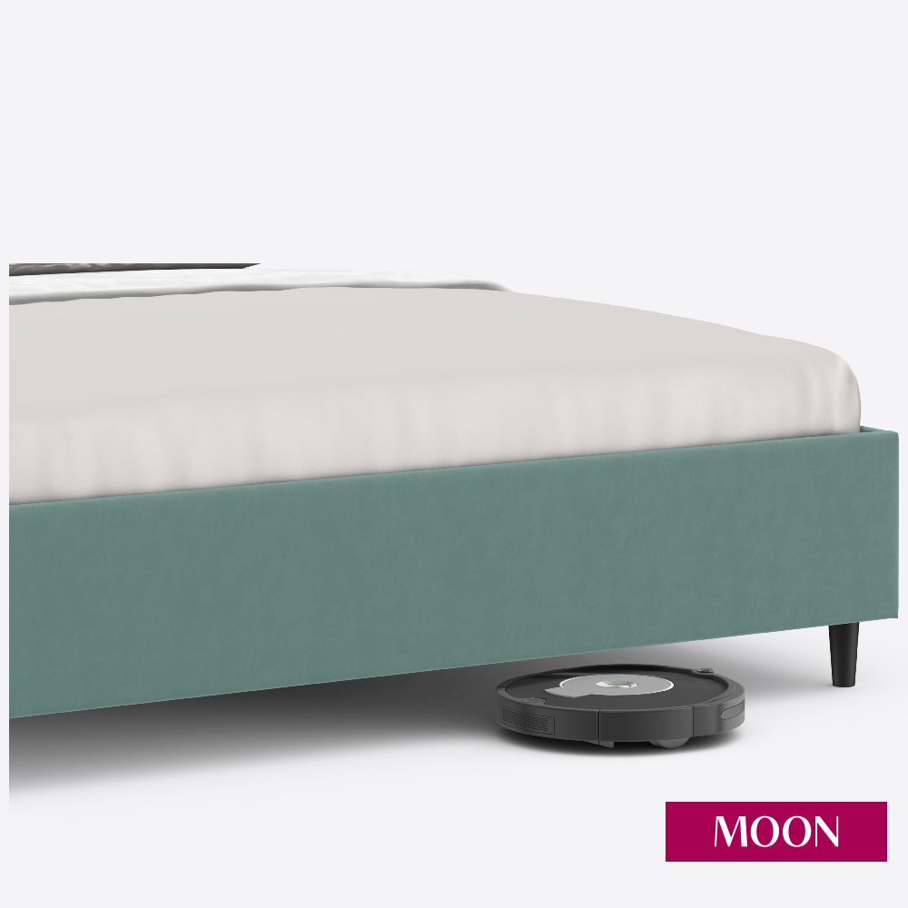 Кровать двуспальная без подъемного механизма на ножках, MOON FAMILY 1262, размер 180х200 см, велюр светло-зеленый. Ортопедическое основание в комплекте