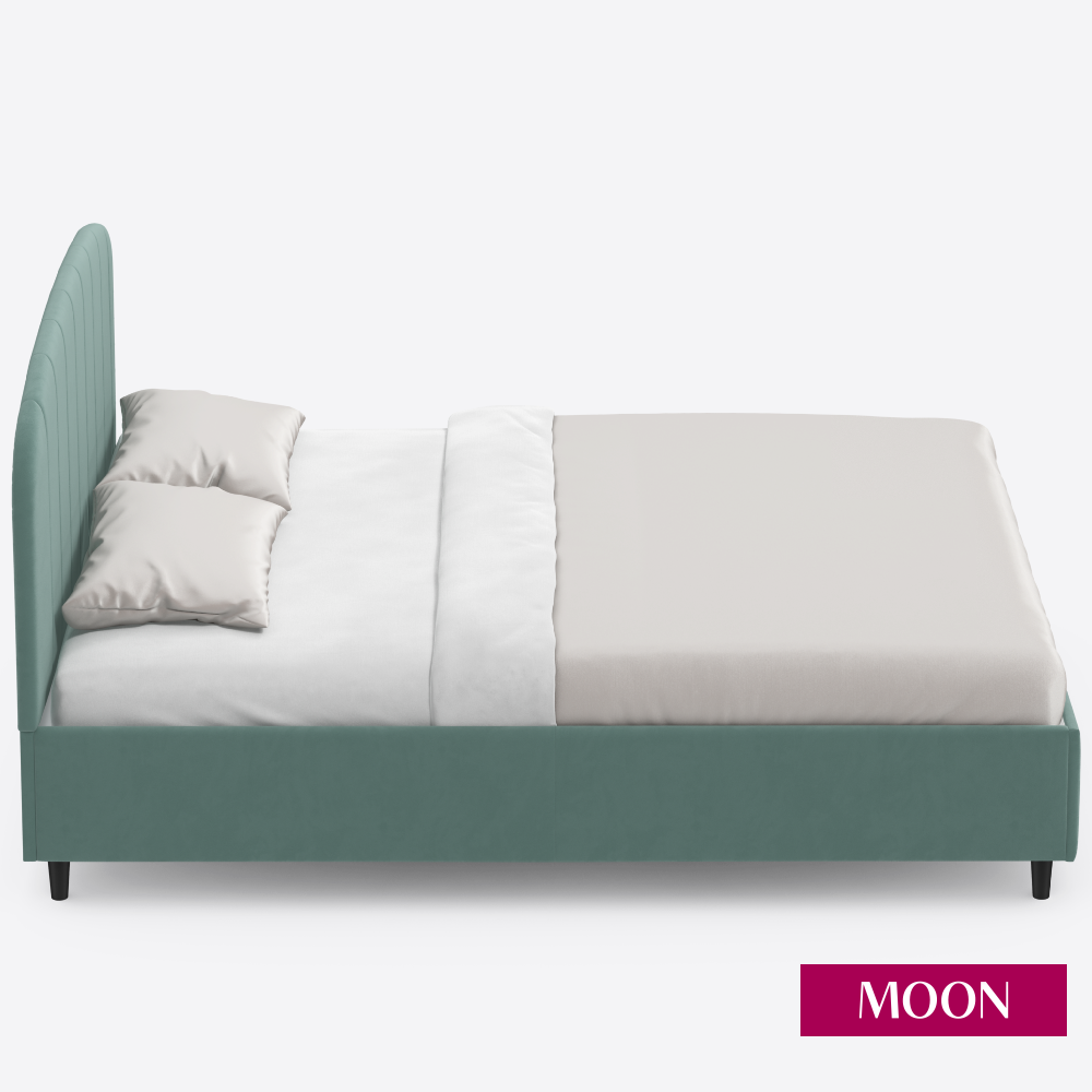 Кровать двуспальная без подъемного механизма на ножках, MOON FAMILY 1262, размер 160х200 см, велюр светло-зеленый. Ортопедическое основание в комплекте