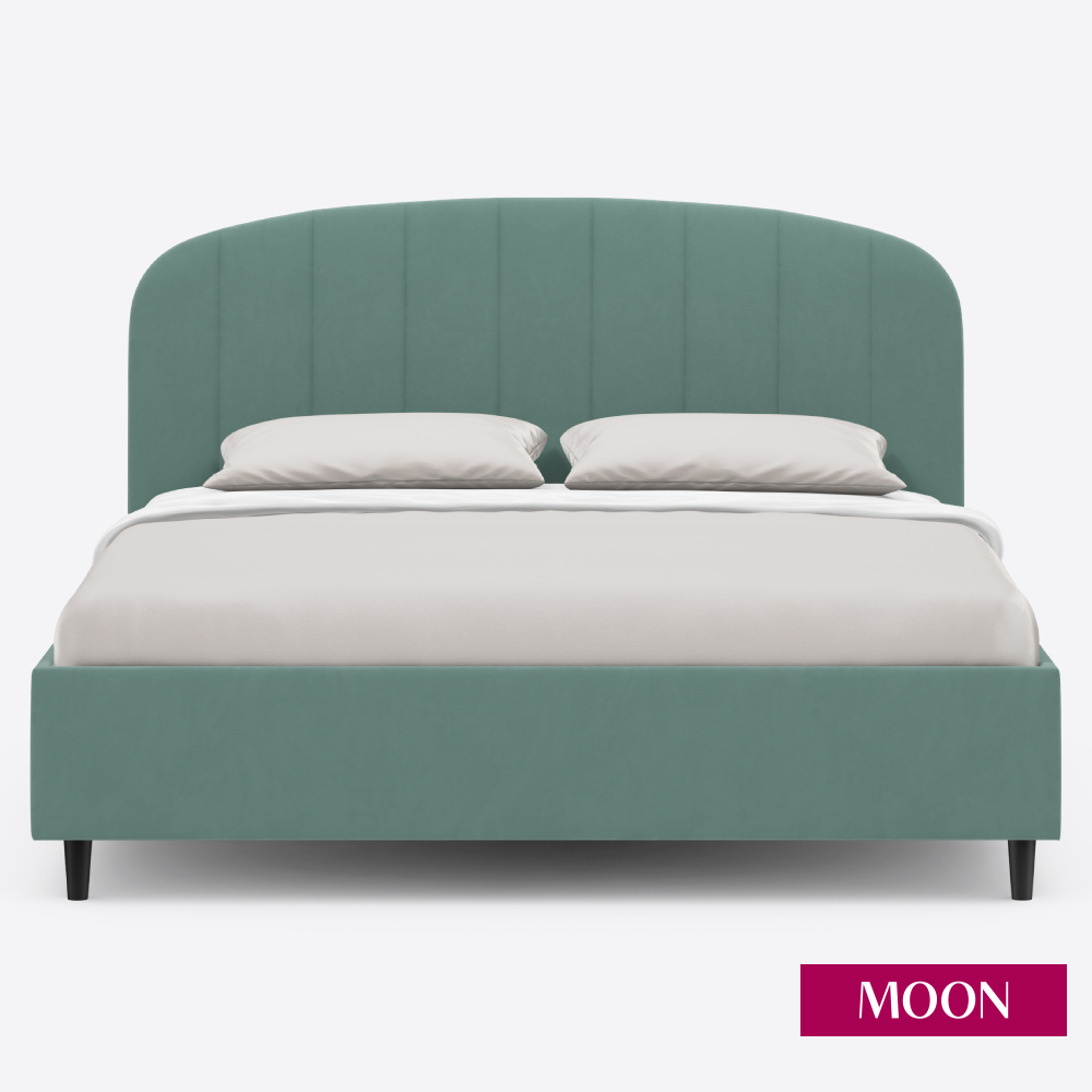 Кровать двуспальная без подъемного механизма на ножках, MOON FAMILY 1262, размер 160х200 см, велюр зеленый. Ортопедическое основание в комплекте