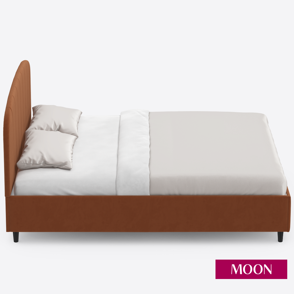 Кровать двуспальная без подъемного механизма на ножках, MOON FAMILY 1262, размер 160х200 см, велюр коричневый перламутровый. Ортопедическое основание в комплекте