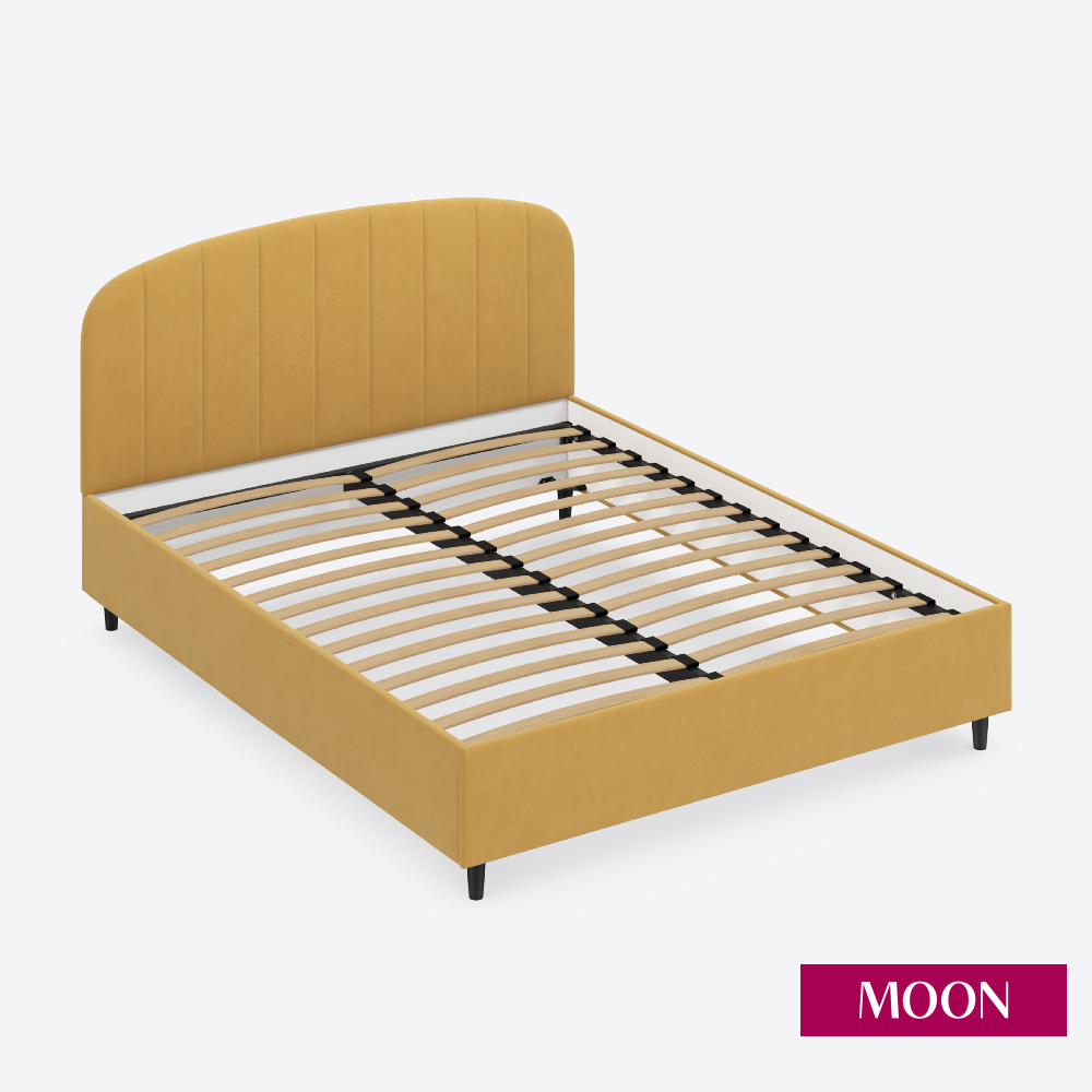 Кровать двуспальная без подъемного механизма на ножках, MOON FAMILY 1262, размер 140х200 см, велюр желтый. Ортопедическое основание в комплекте