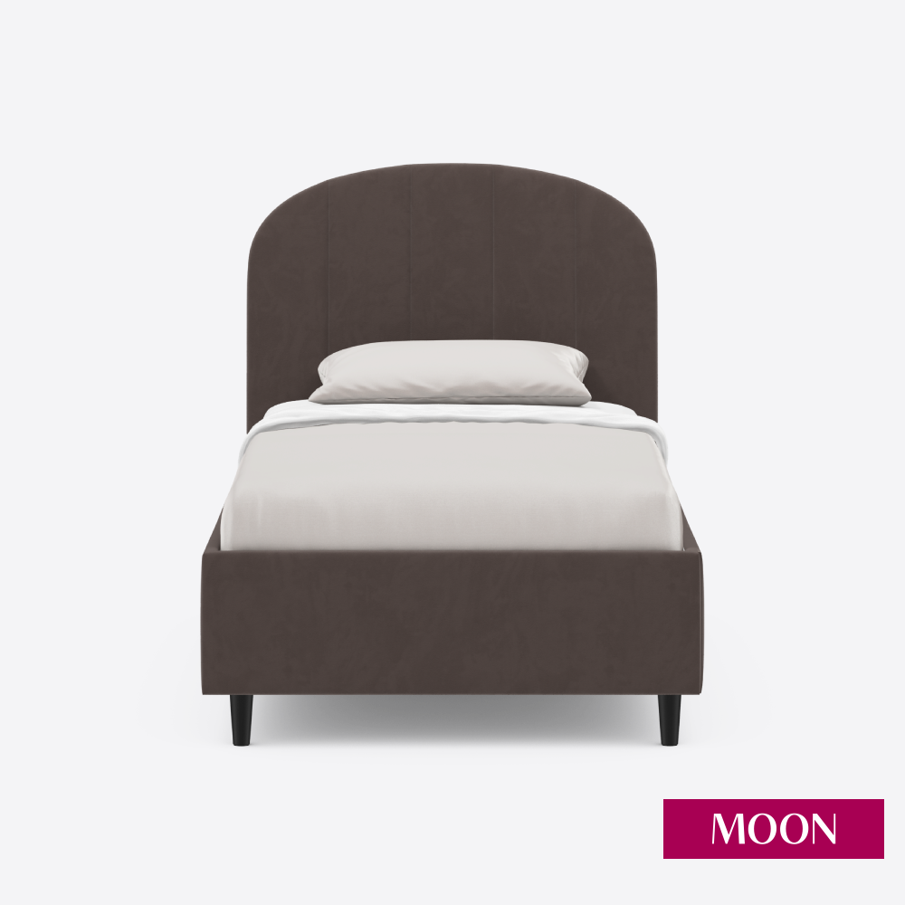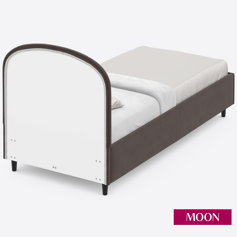Кровать односпальная без подъемного механизма на ножках, MOON FAMILY 1262, размер 120х200 см, велюр коричневый перламутровый. Ортопедическое основание в комплекте