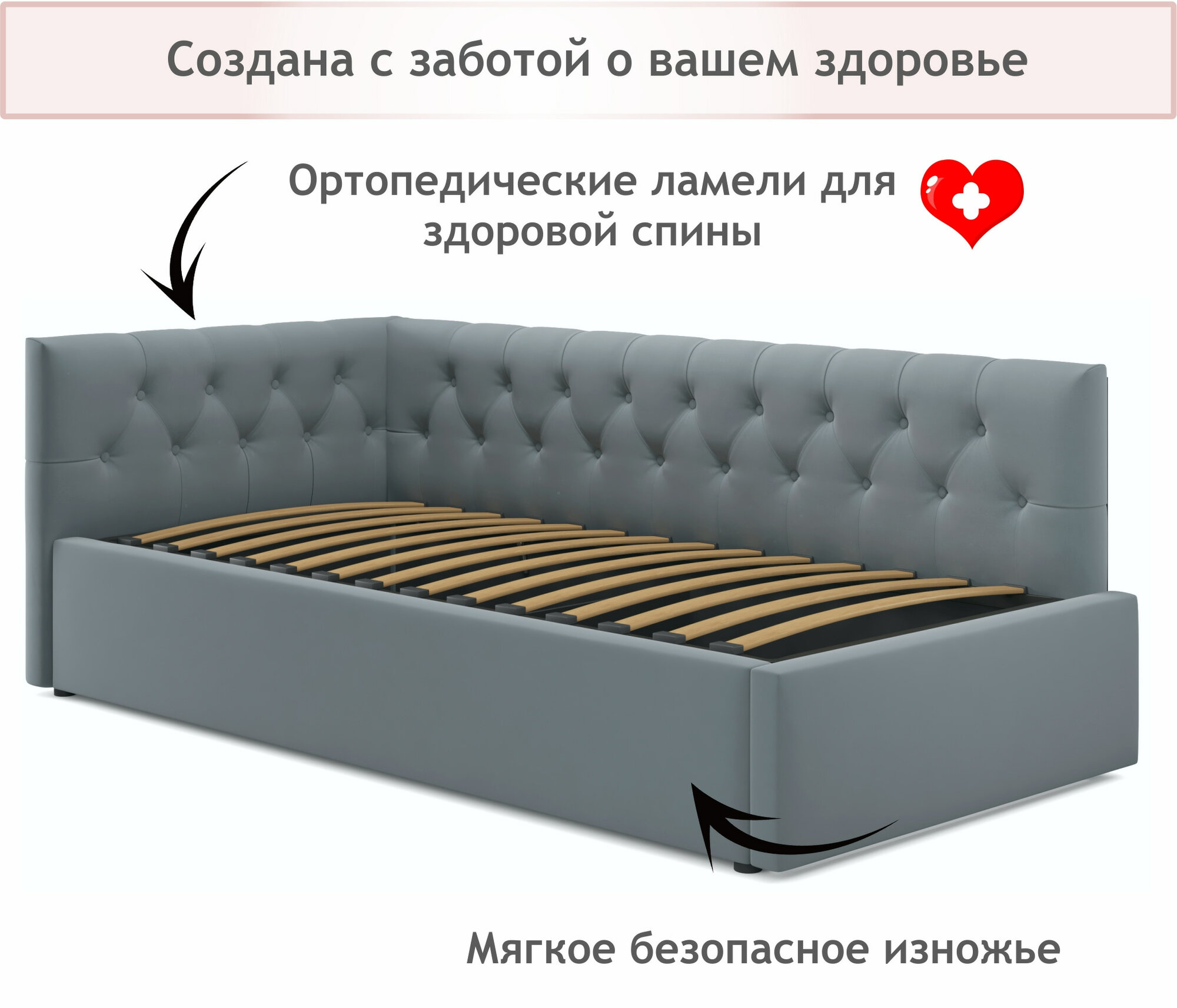 Купить Мягкая кровать-тахта Afelia 900 серая с ортопедическим основанием