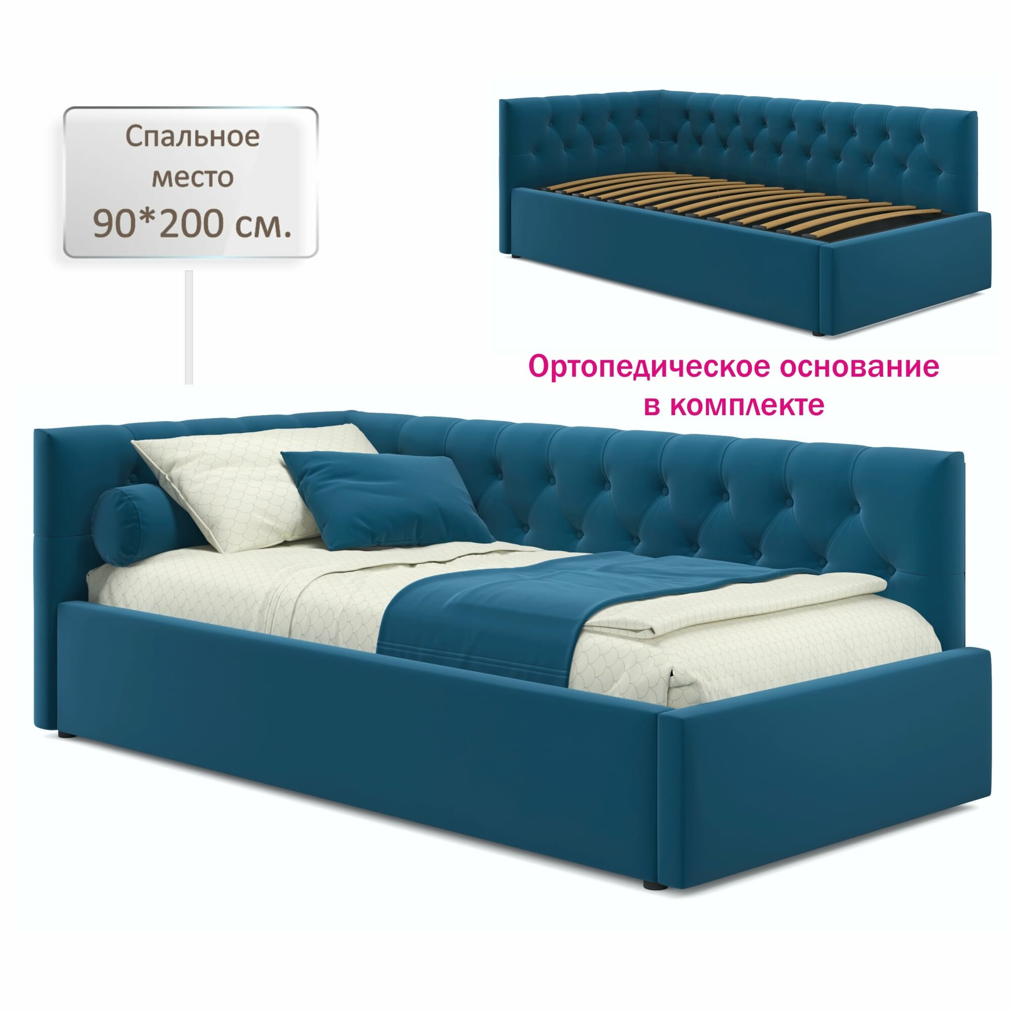 Купить Мягкая кровать-тахта Afelia Zeppelin 900 синяя с ортопедическим основанием