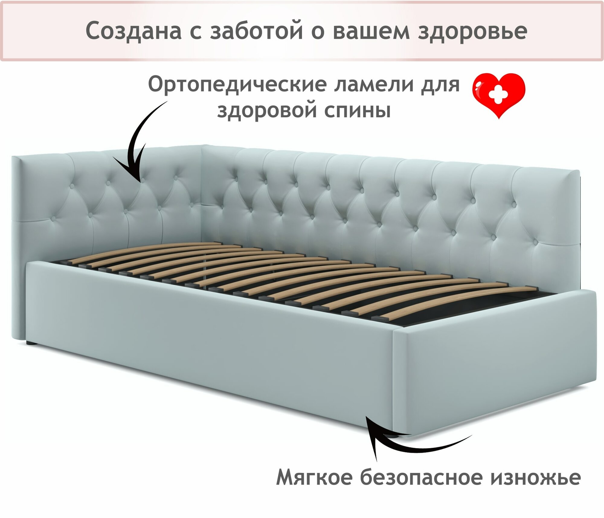 СохранитьМягкая кровать-тахта Afelia Zeppelin 900 мята пастель с ортопедическим основанием интересное: