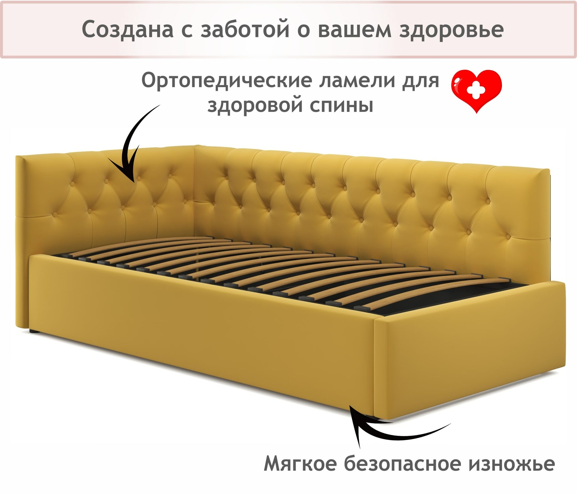 СохранитьМягкая кровать-тахта Afelia 900 желтая с ортопедическим основанием Zeppelin Mobili интересное: